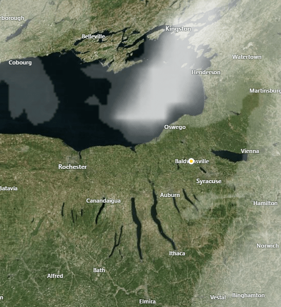 If the screen shot is accurate, I will have mostly clear skies throughout the lunar eclipse phases … if I go to Baldwinsville, New York, just north of Syracuse.