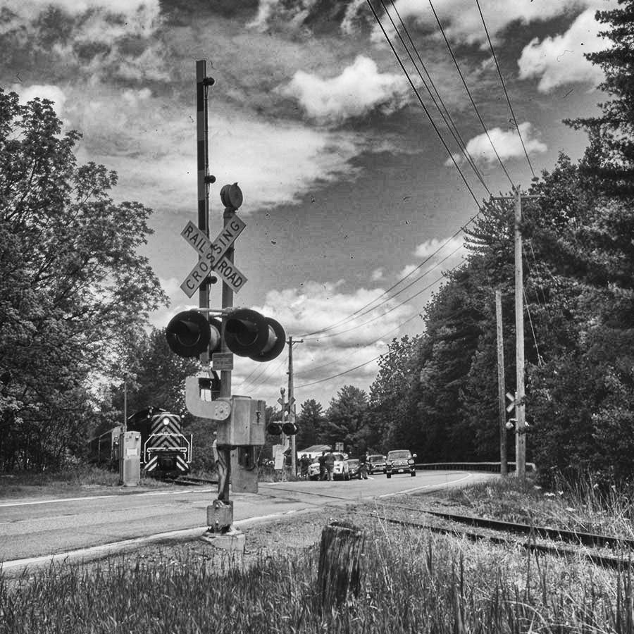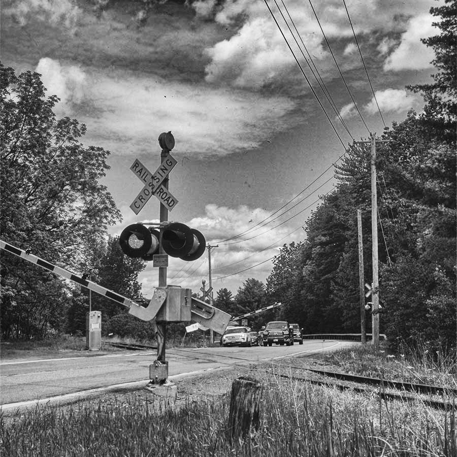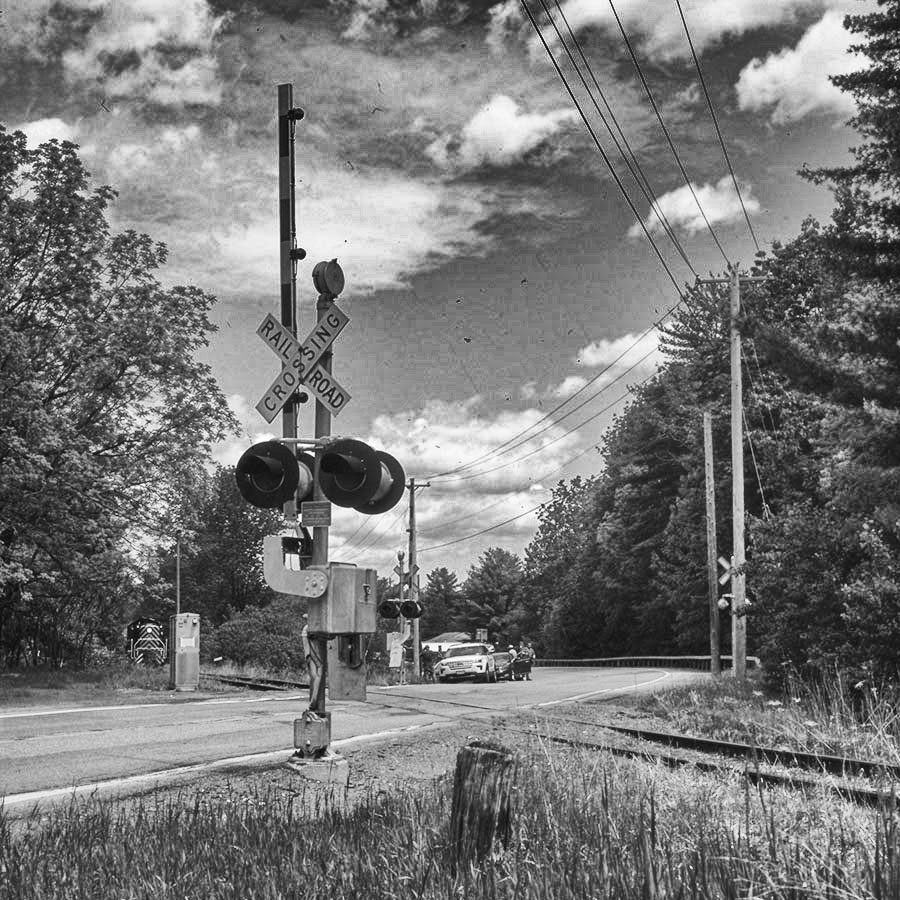 May 29, 2022. The train crosses over Route 9N at several juncture points; however, I’m at the only spot where the train tracks are not elevated over Route 9N. So this involves a railroad crossing gate. Again, set up the camera and the positioning. This time, I brought my Pentacon Six, which can capture twelve images on 120 film. Ready? Say cheese.