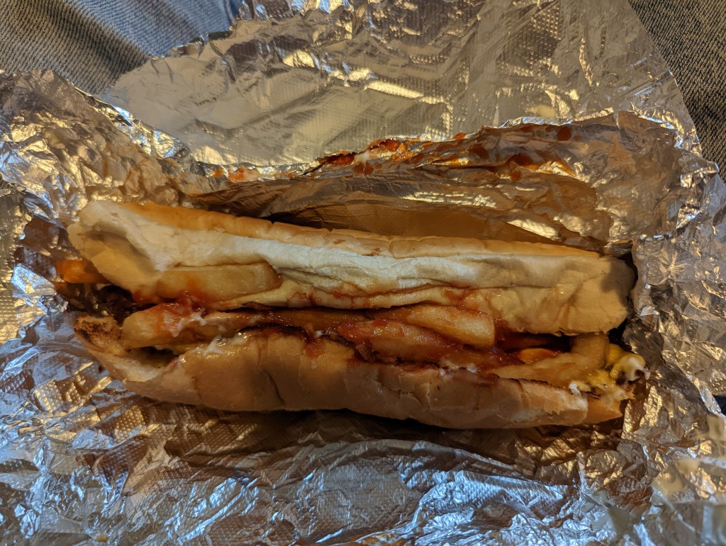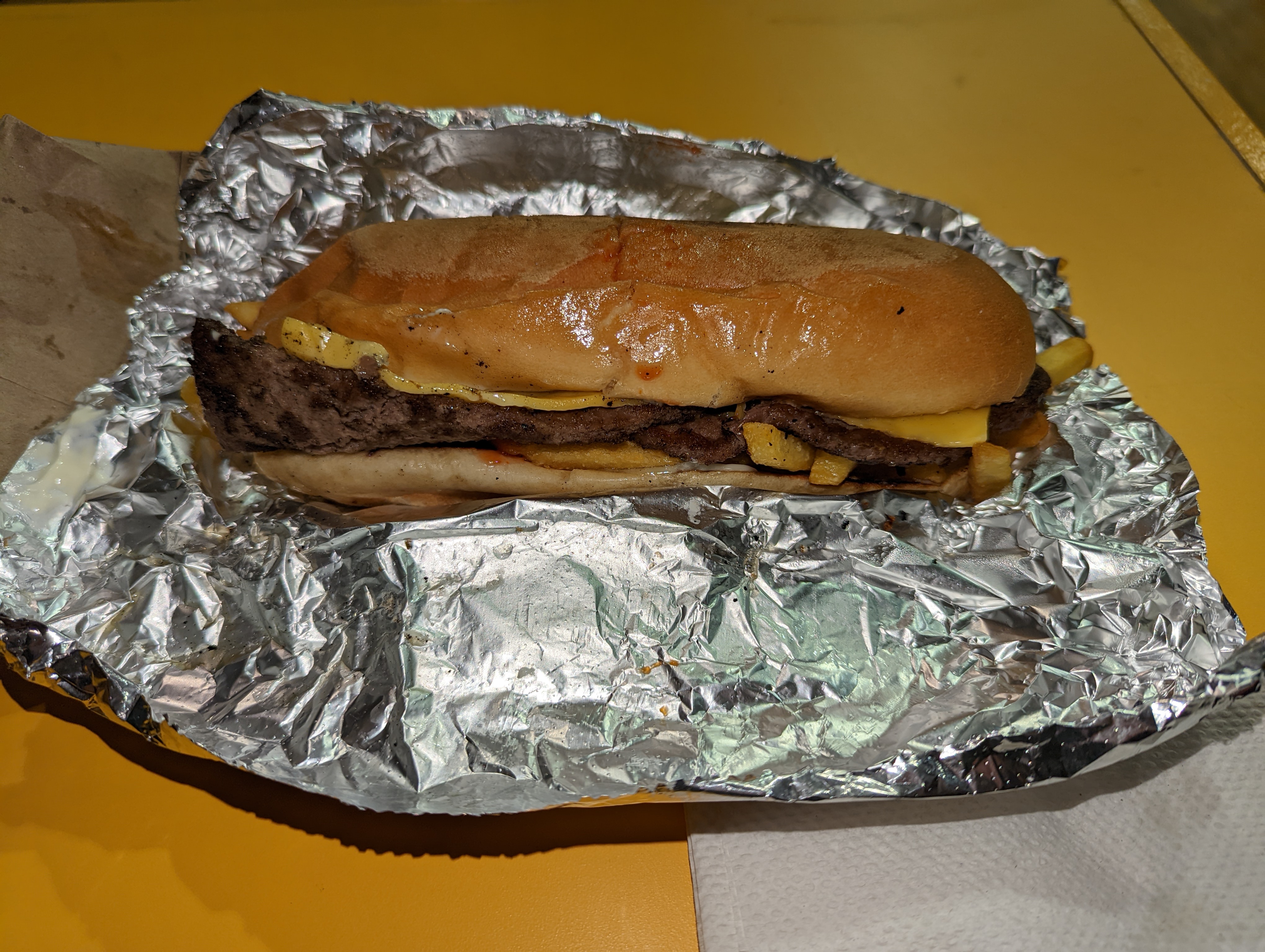 But I’m talking about the Italian Cheeseburger here, which is served on a long bun and, in addition to the burger and cheese, French fries are added on top of the sandwich. Damn that’s good.