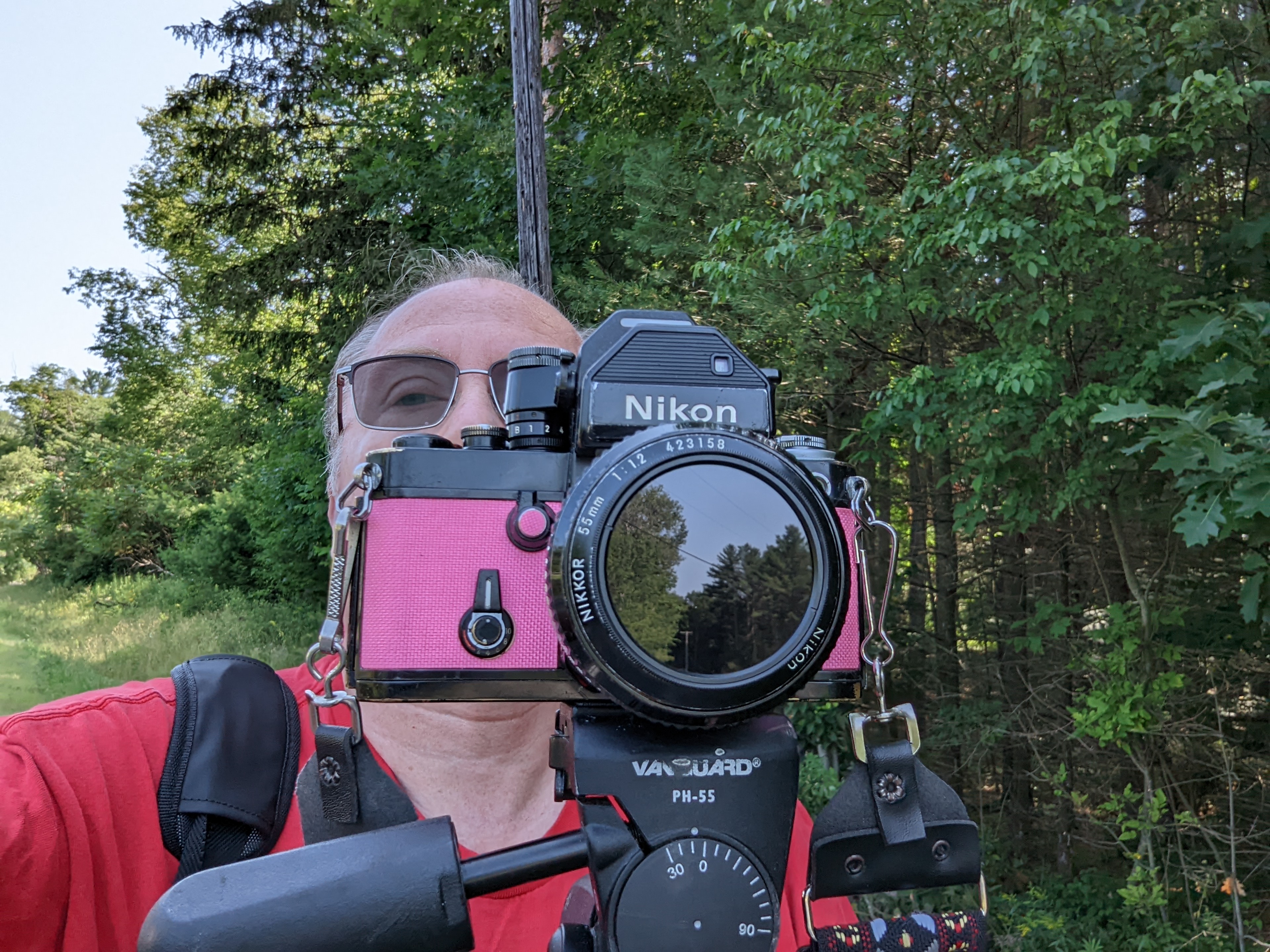 So I took the lens cap off the camera, and screwed on the R72 filter. And just for the heck fo it, I took a selfie of Nikon Athena and me with my cell phone.