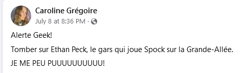 We’ve been Facebook friends for a while, and although she is bilingual, her FB posts are in French – which gets automatically converted to English when they arrive in my FB feed.