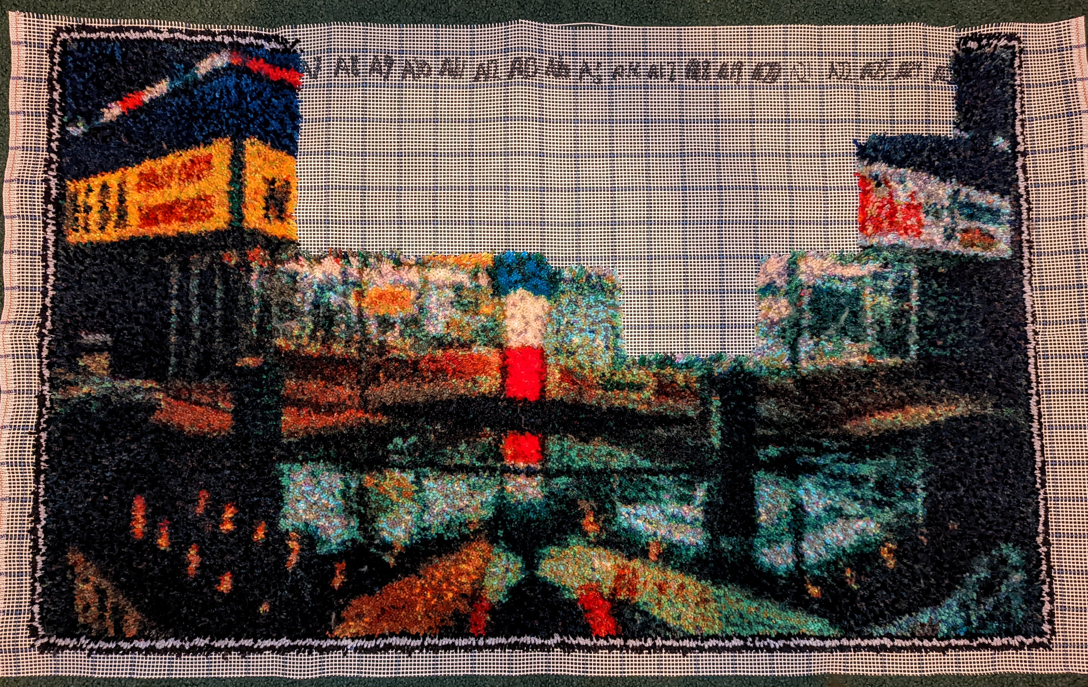 Then comes the next step. I have to re-paint the back with a special rubber compound to keep all the yarns from falling out. Then I need to stitch up the edges and “bind” the rug. Once that’s done … I have a fully functioning and operational latch hook rug, suitable for Competition Season or Charity Season or Walking Barefoot On It Season.