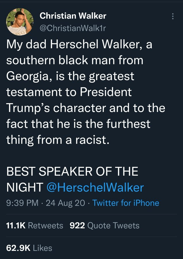 Herschel Walker’s Georgia Senate campaign has more scandals attached to it than a Kerry Washington TV drama. And at the beginning of those scandals – especially the ones involving Walker’s parentage of other children with other women, one of his most strident supporters was his son Christian Walker.