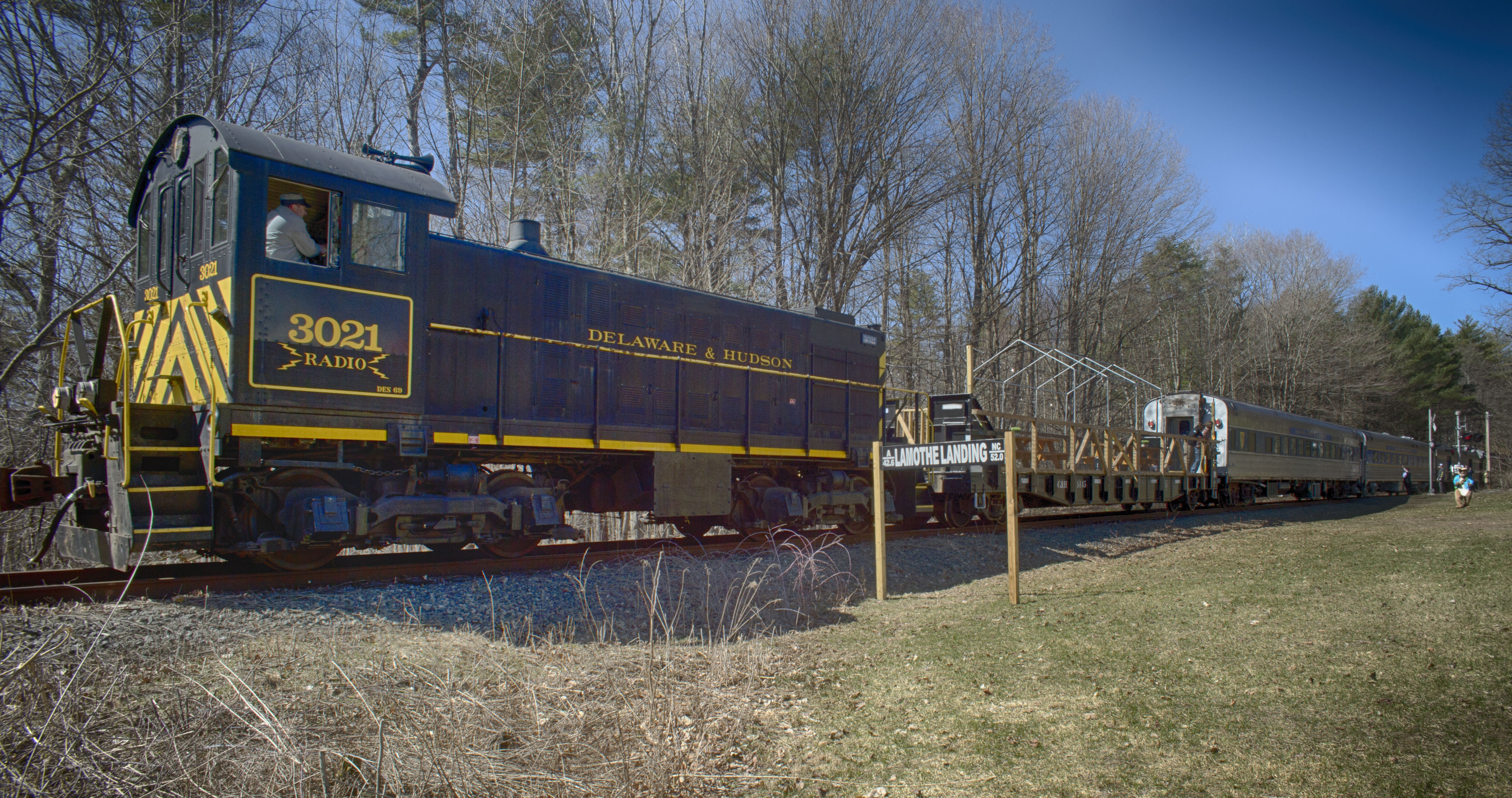 Well, that’s not the big ALCO-5 train … but it’s still a historic part of Adirondack railroading. See, the locomotive in the picture is the ALCO-2 Delaware & Hudson #3021, which operated in the Battenkill Railroad in Washington County. It’s now in service as part of the SC&H livery, although it still retains its old Delaware & Hudson branding.