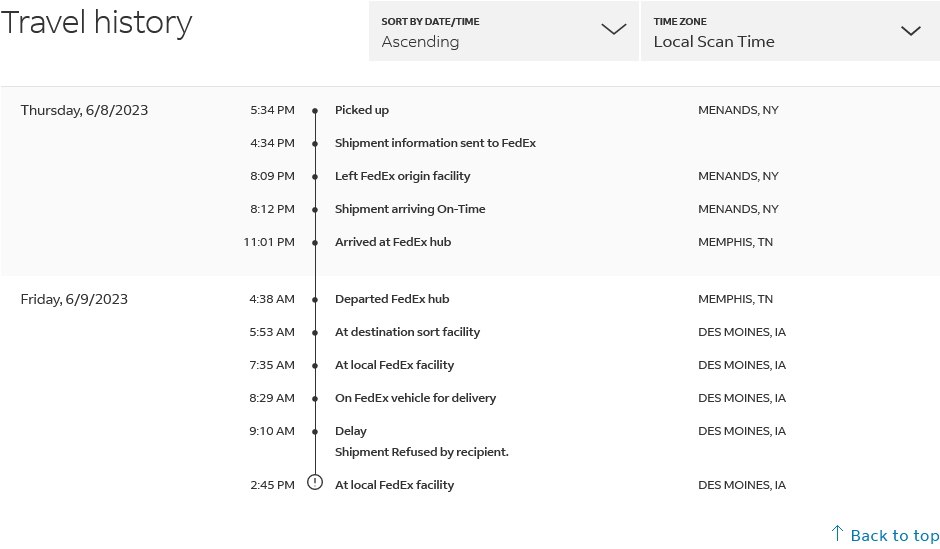 Wait … look at the 9:10 am entry. “Shipment Refused by Recipient.”