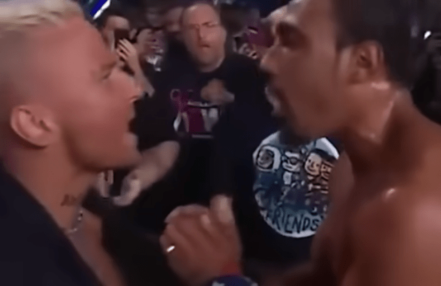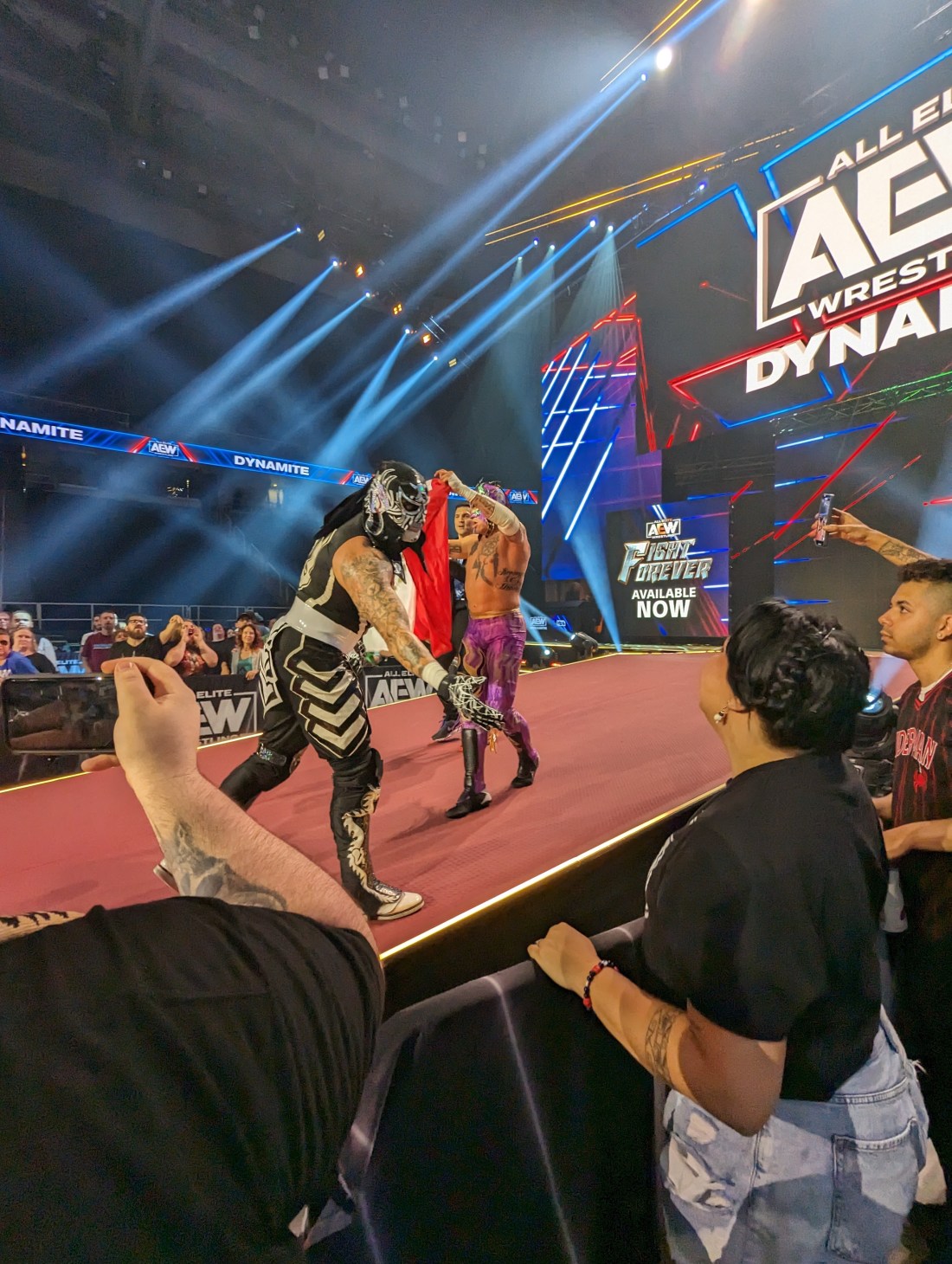 Anyways, Orange Cassidy won the match, and afterward offered his sunglasses to A.R. Fox as a sign of respect. Fox wore the sunglasses, then busted them in half and blindsided Orange Cassidy with a sucker punch. That brought out Darby Allin, another extremely popular AEW wrestler who initially vouched for A.R. Fox to get this title shot, and Darby Allin was NOT happy. He and Fox were arguing RIGHT IN FRONT OF ME.