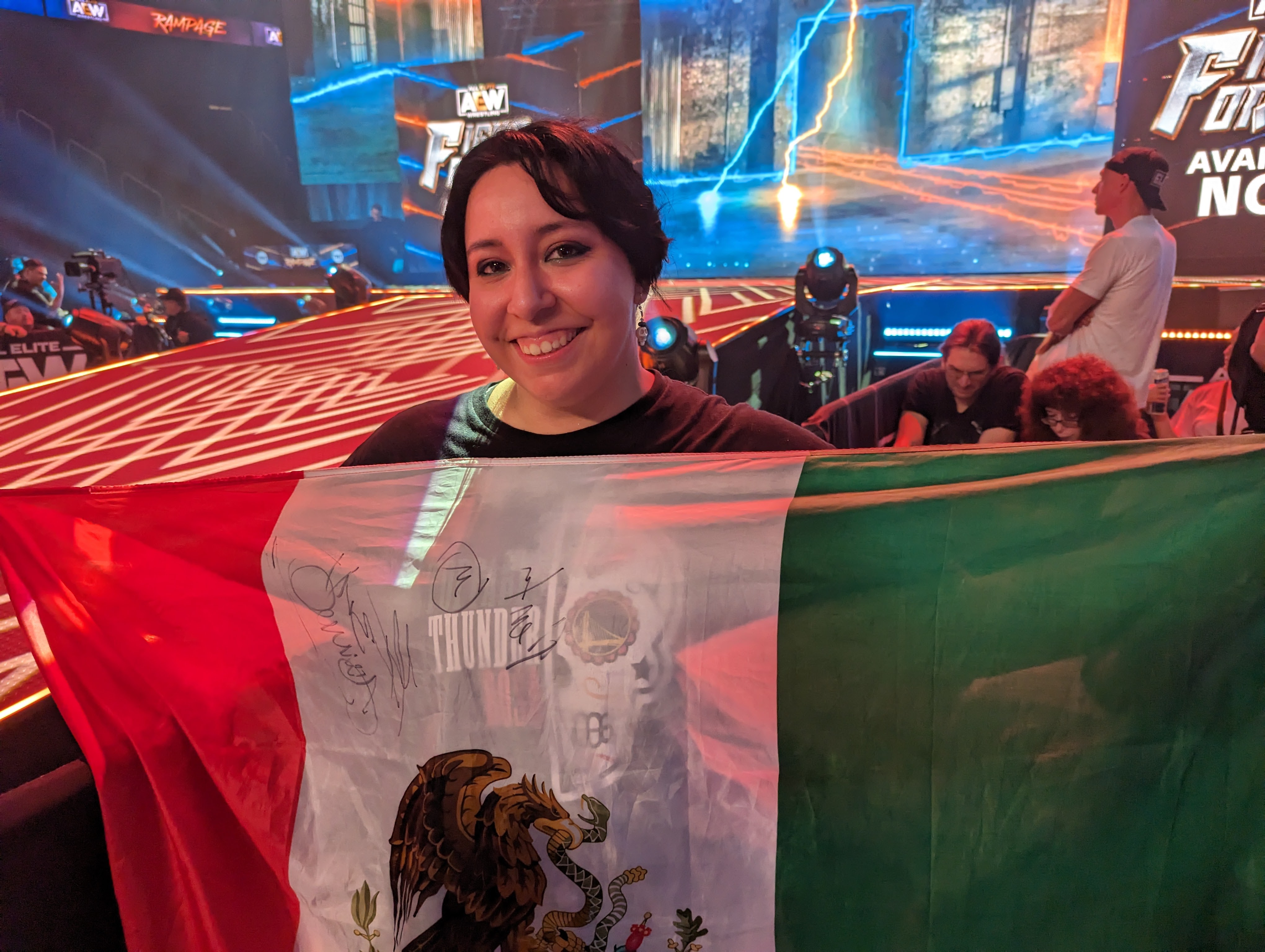 The Lucha Bros left the stage – with the Mexican flag – and the fans who brought the flag were completely over the moon. She told me that she loves watching all the AEW luchadores and lucha libre stars from Mexico, with her favorites being Fenix and Penta, along with Rush, Bandido, El Hijo de Vikingo, Komander, Andrade El Idolo, all of them. And her flag made it onto national television, so that was a bonus in and of itself.