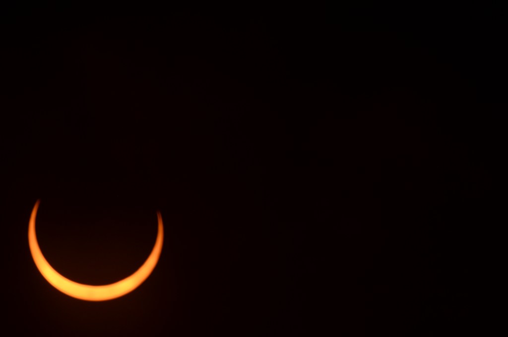 Unlike a total solar eclipse, it is never safe to look directly at an annular eclipse without using special protective eyewear. So as much as I would love to take off my solar shades and just marvel at what’s out there … I’d rather not suffer blindness in doing so. Trust me, this is REALLY what your parents meant when they said, “If you don’t stop this, you’ll go blind.” Ha.