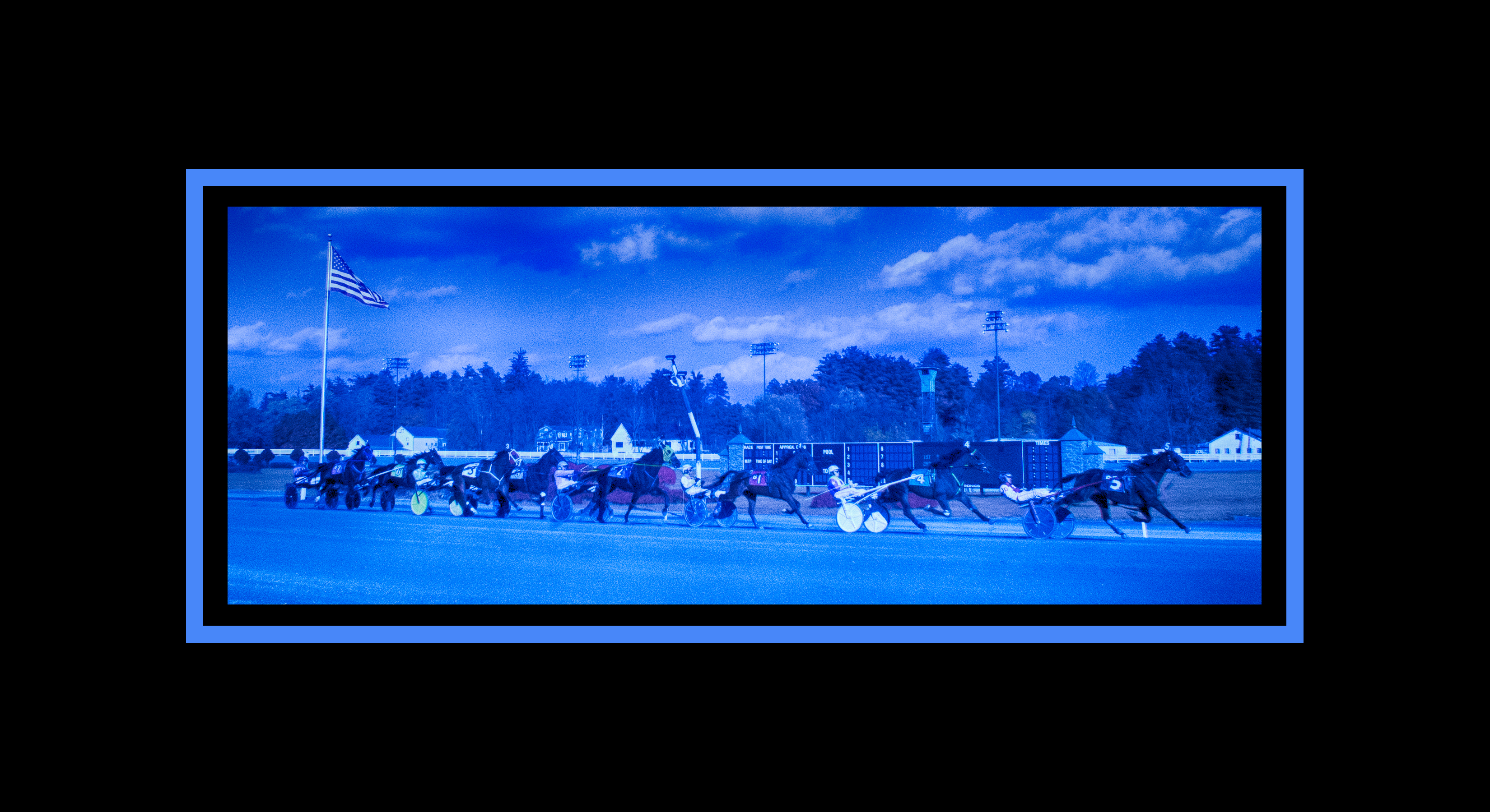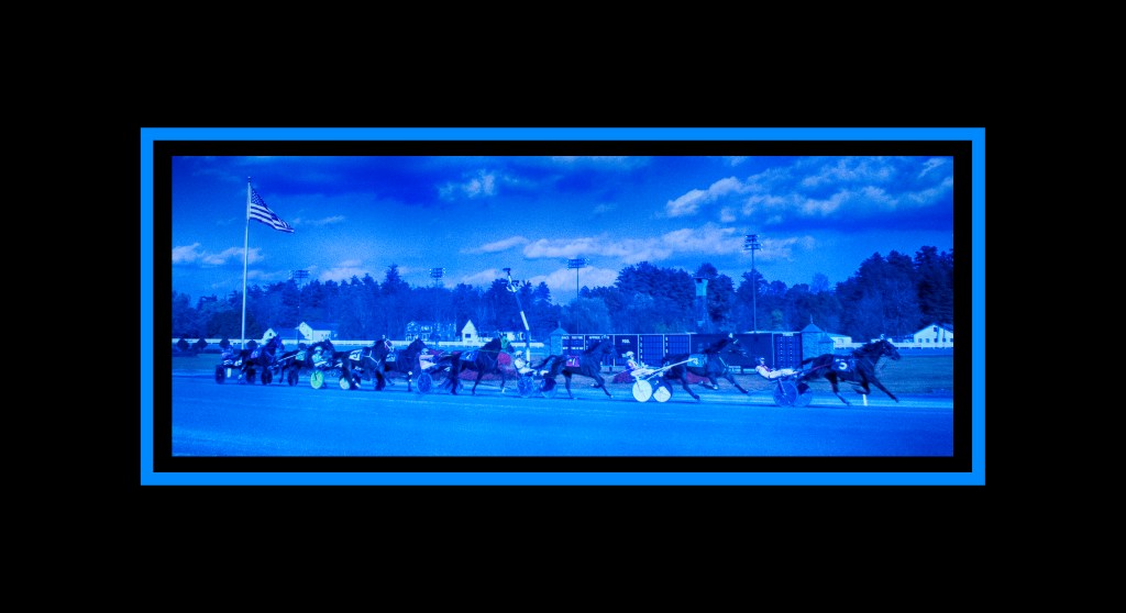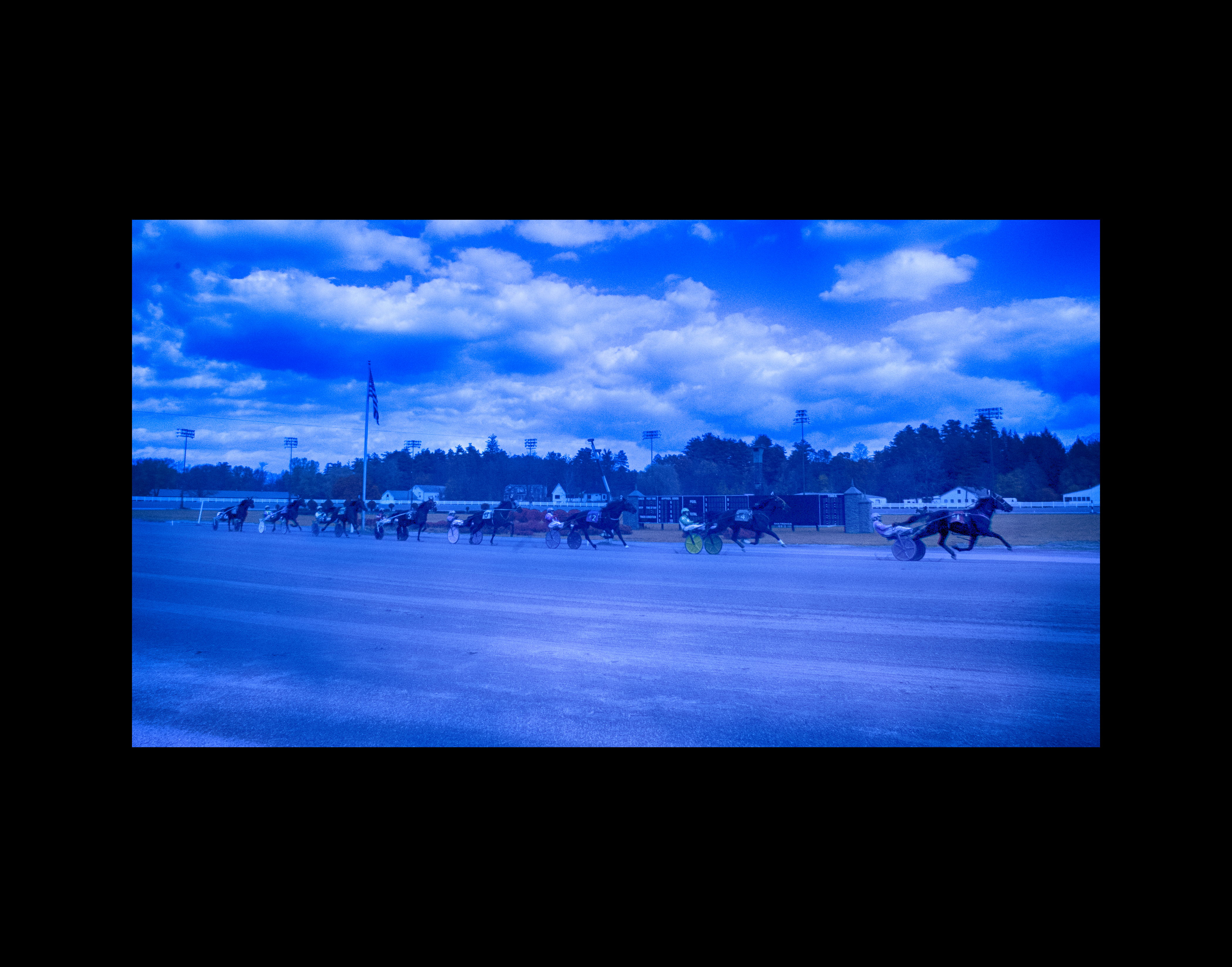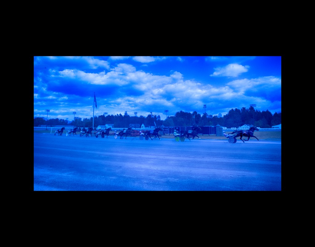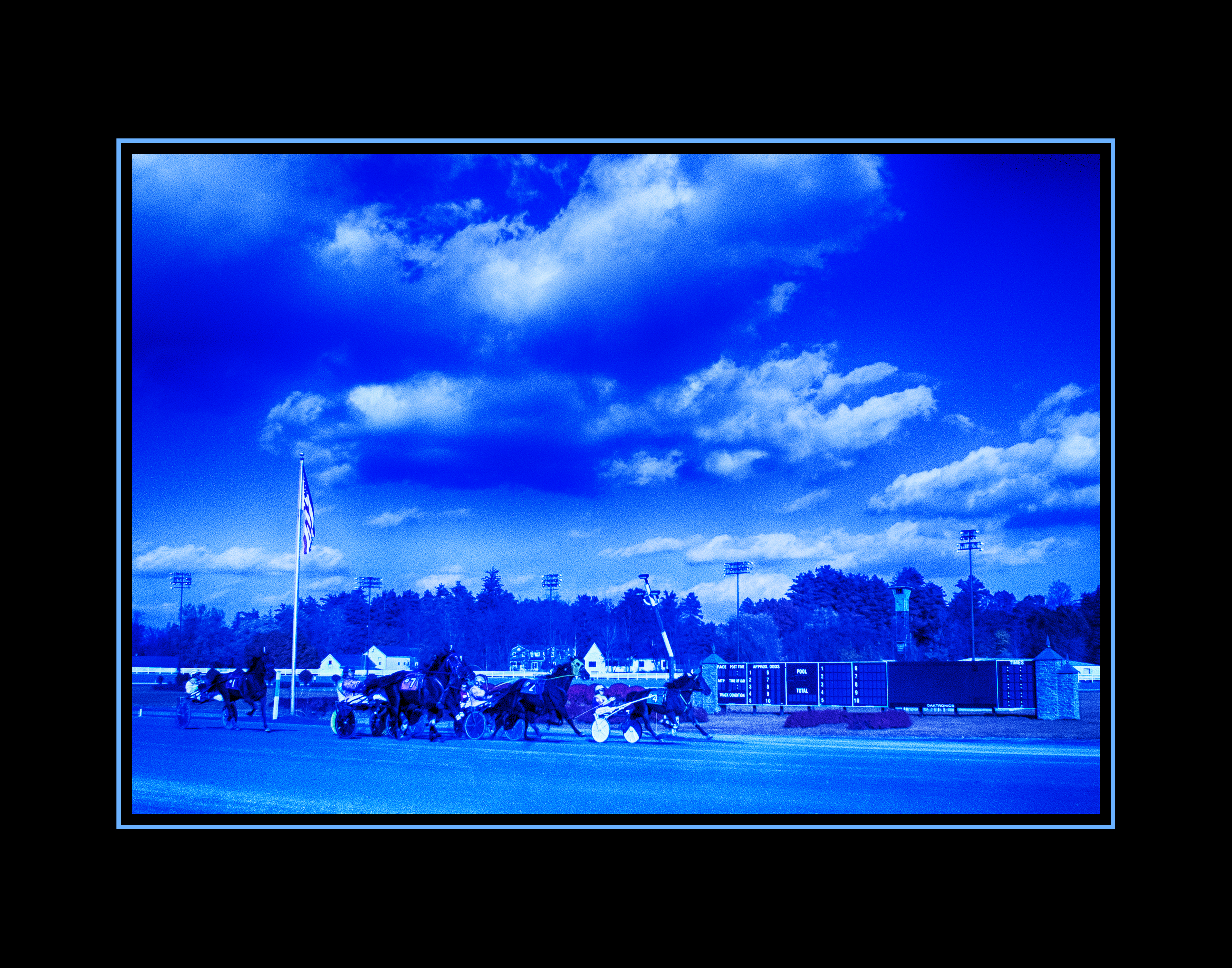 Unlike last Saturday’s infrared photo attempts, which had very little sunshine, I was able to get big bursts of sunshine throughout the first six races at the harness track. First I set up the camera with the 720nm black and white infrared filter. And if this works … I’ll be a happy man.