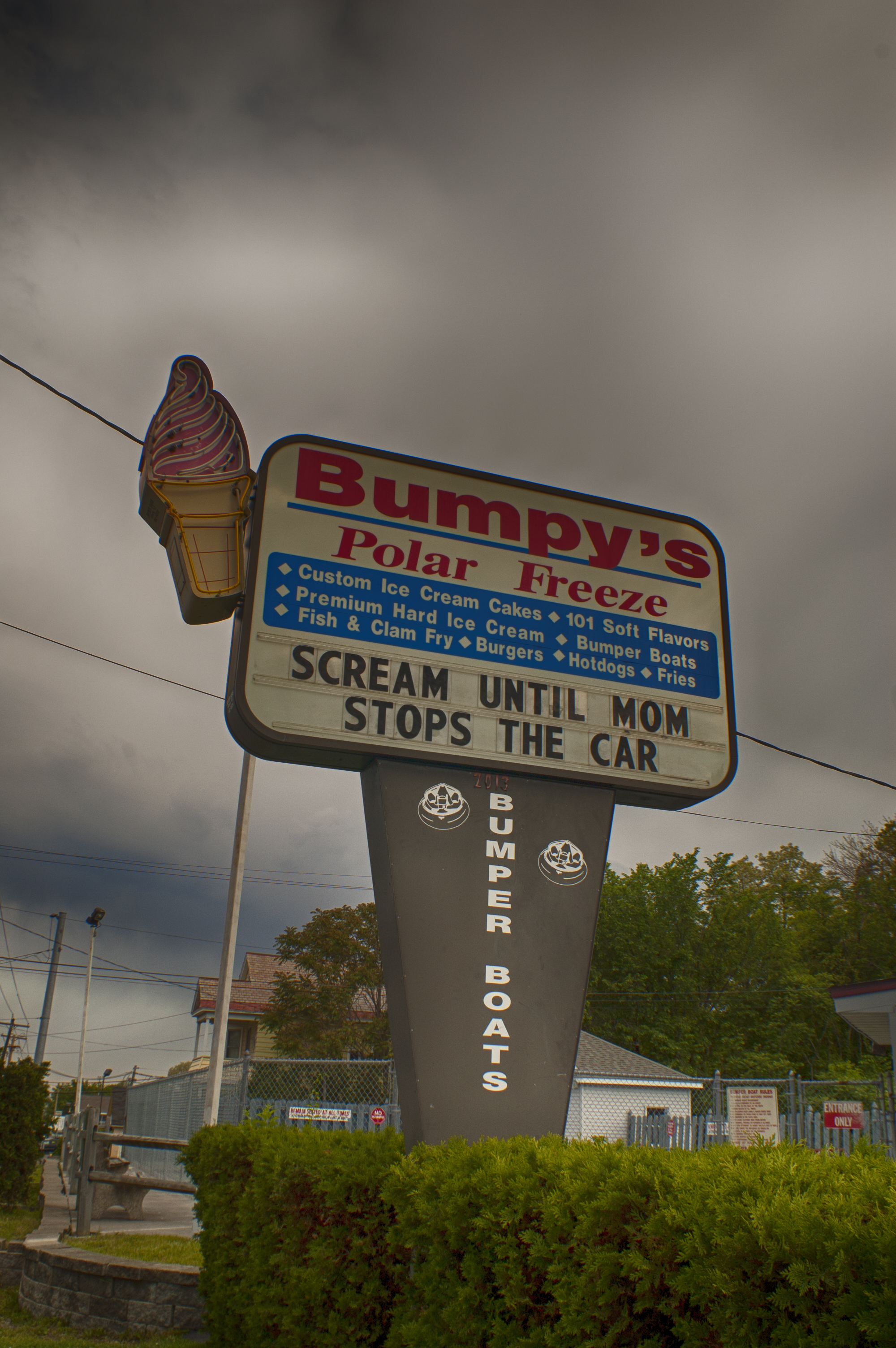 Here’s another one. This was an ice cream and bumper-boat place in Schenectady called Bumpy’s Polar Freeze. I caught this little image in May of 2009.