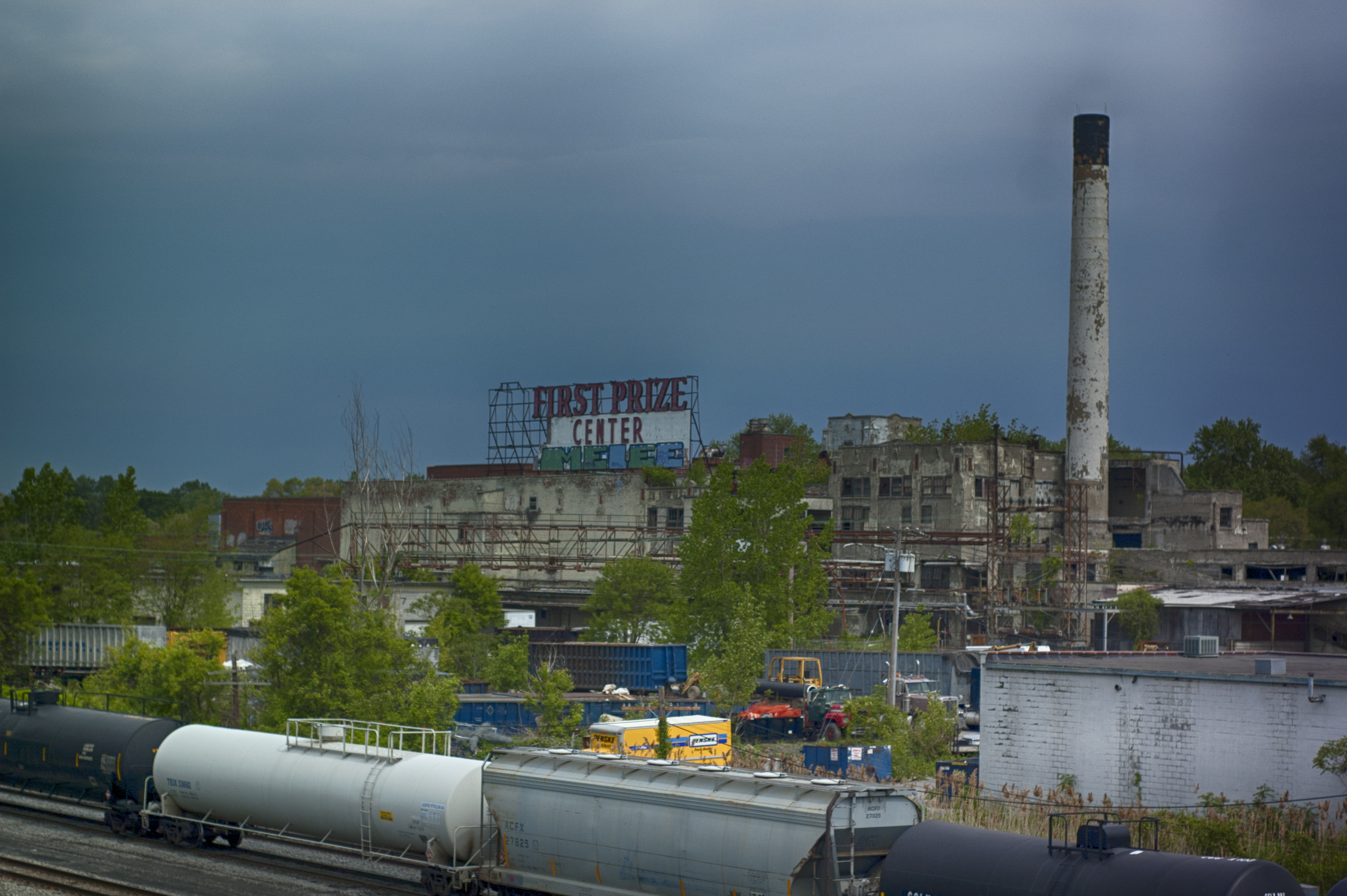 Yep, that is the old First Prize slaughterhouse and meat packing plant on Everett Road, just off I-90. By 2009, the building was mostly used by urban explorers and graffiti taggers. A couple of years ago, the building was razed; only the smokestack still stands today.