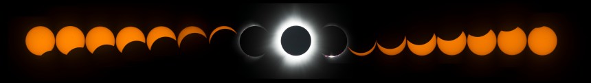 But I want that classic eclipse shot of the sun trail with the moon passing in front of it. So I took some of my eclipse photos, spaced them into a 10-minute-per-shot interval, and … well …