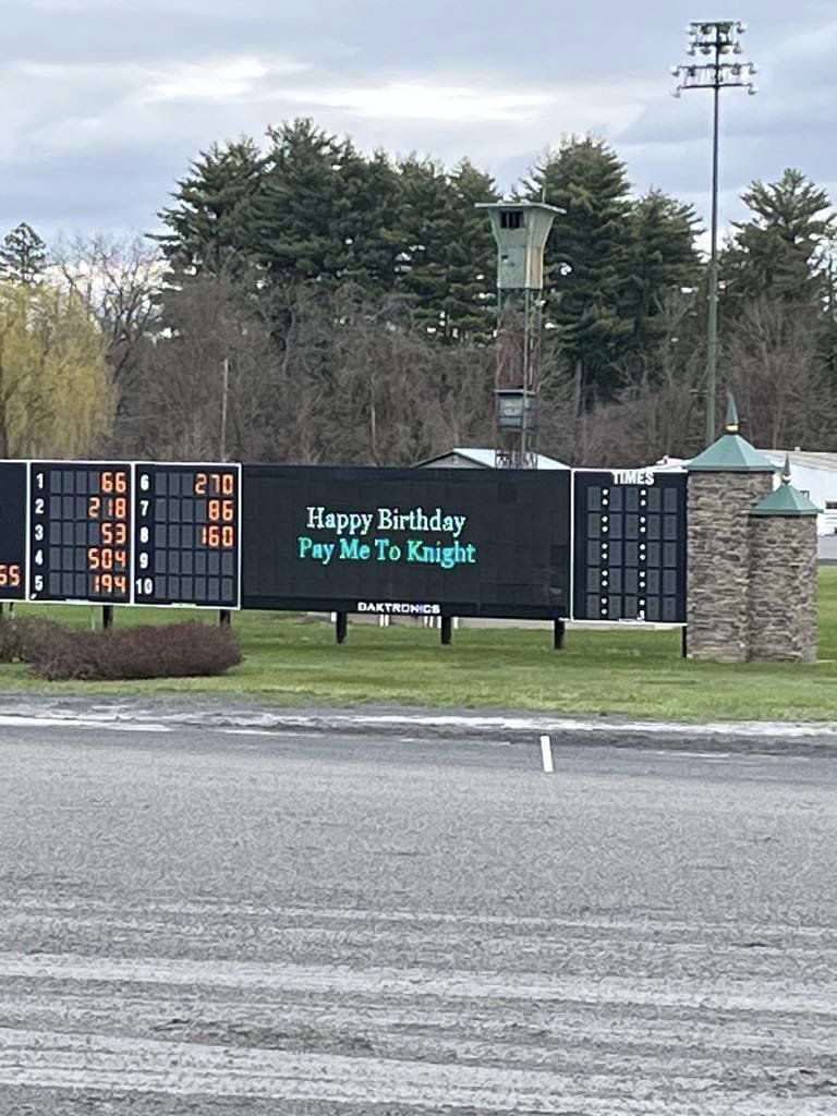 Junior, the blue roan harness trotter racehorse known officially as Pay Me To Knight, had a birthday yesterday.