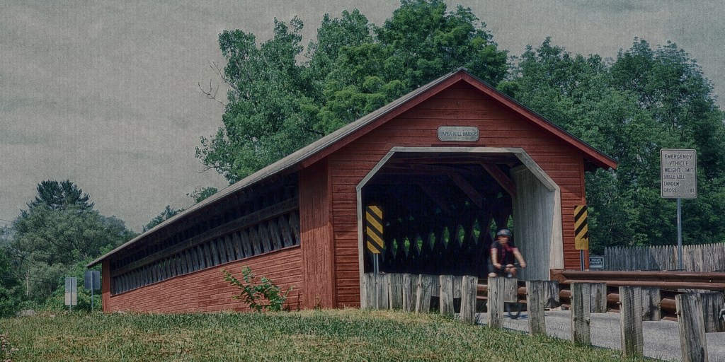 Unfortunately, the surface shots of Paper Mill Covered Bridge aren’t really great. One side has a picket fence to protect trespassers from entering private property; and the other side of the bridge was just blah. And again – still recovering from foot surgery – I’m not taking a chance to stumble down to the riverside.