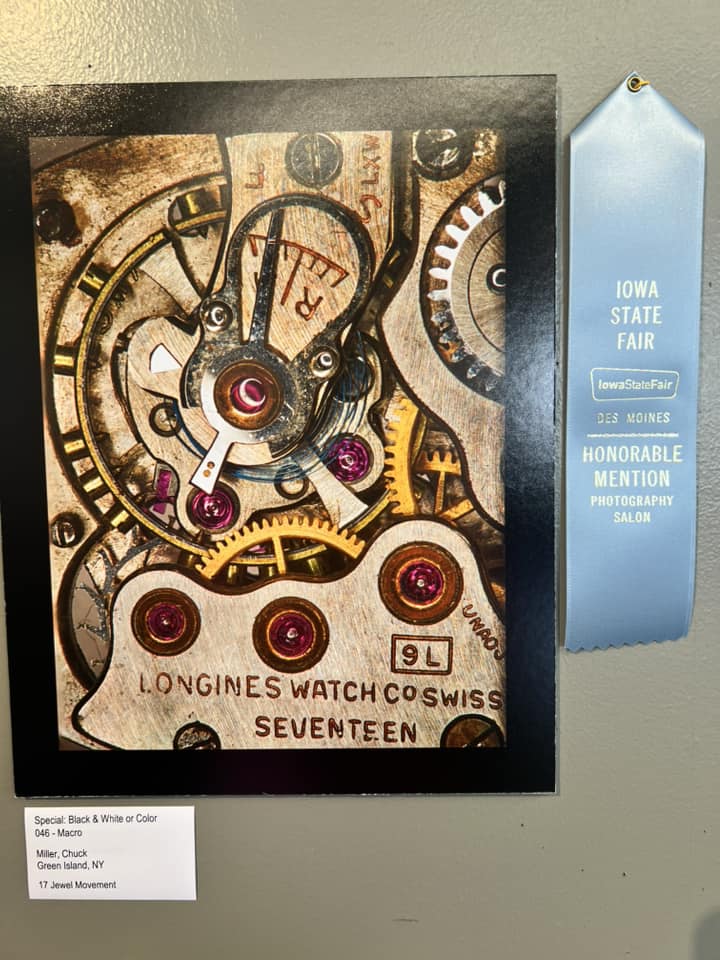 Tick tock on the clock, 17 Jewel Movement is now the first-ever silk earned by my Nikon medical lens. It’s also my second macro shot to make it to the walls of the Iowa State Fair, after 2021’s “High and Tight” got a second-place silk in its category.