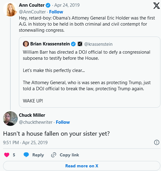 But the damage was done. We already know what’s in what’s left your diseased, rotted heart, Ann Coulter.