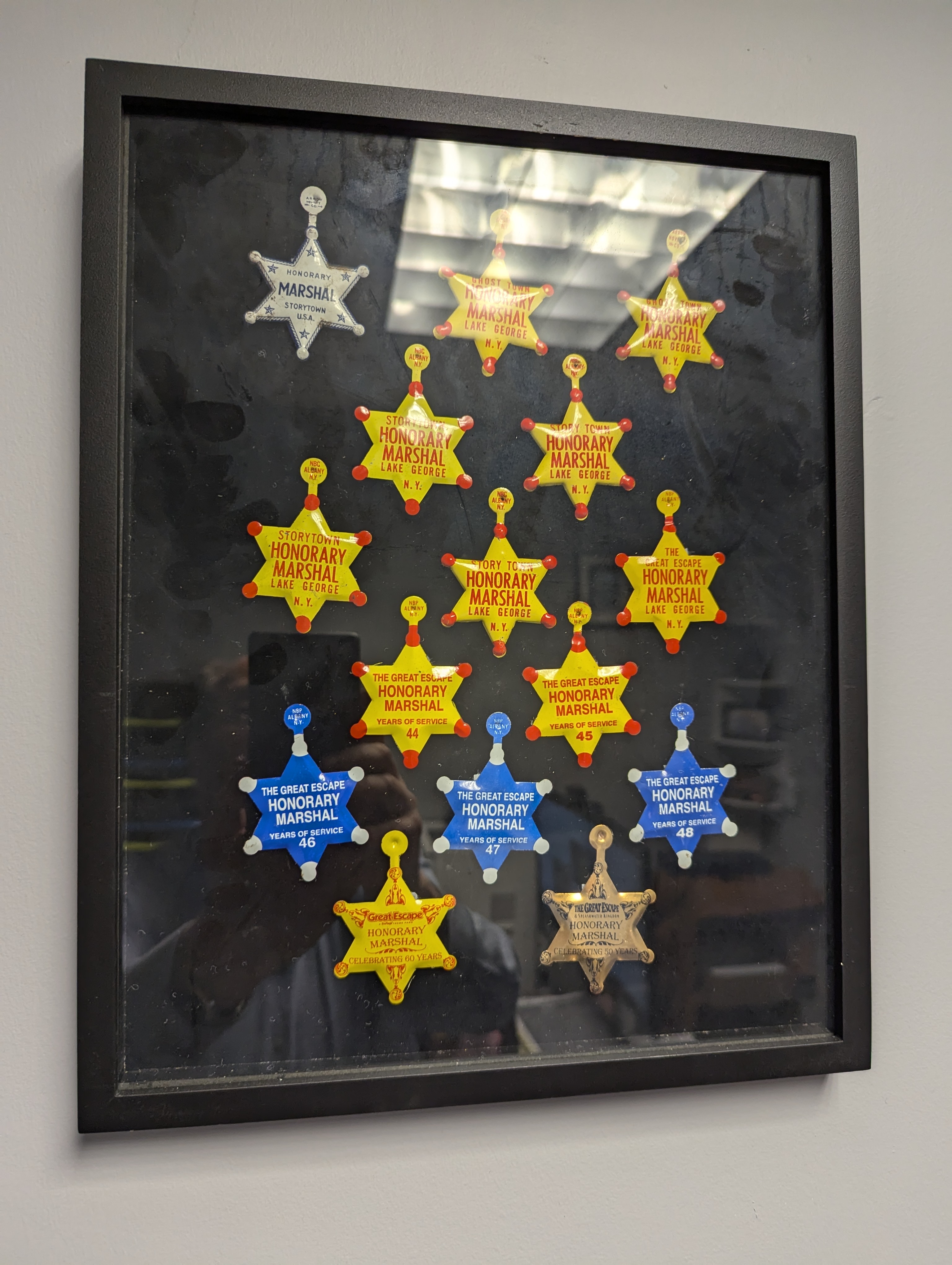 And if we went to Storytown / The Great Escape, we invariably would visit the Wild West section known as Ghost Town, where Sheriff Wild Windy Bill McKay would capture some bank robbers and horse thieves four times a day. It was fun. Trust me, it was fun. And all the junior deputies received a special painted steel badge for our efforts in capturing the varmints.