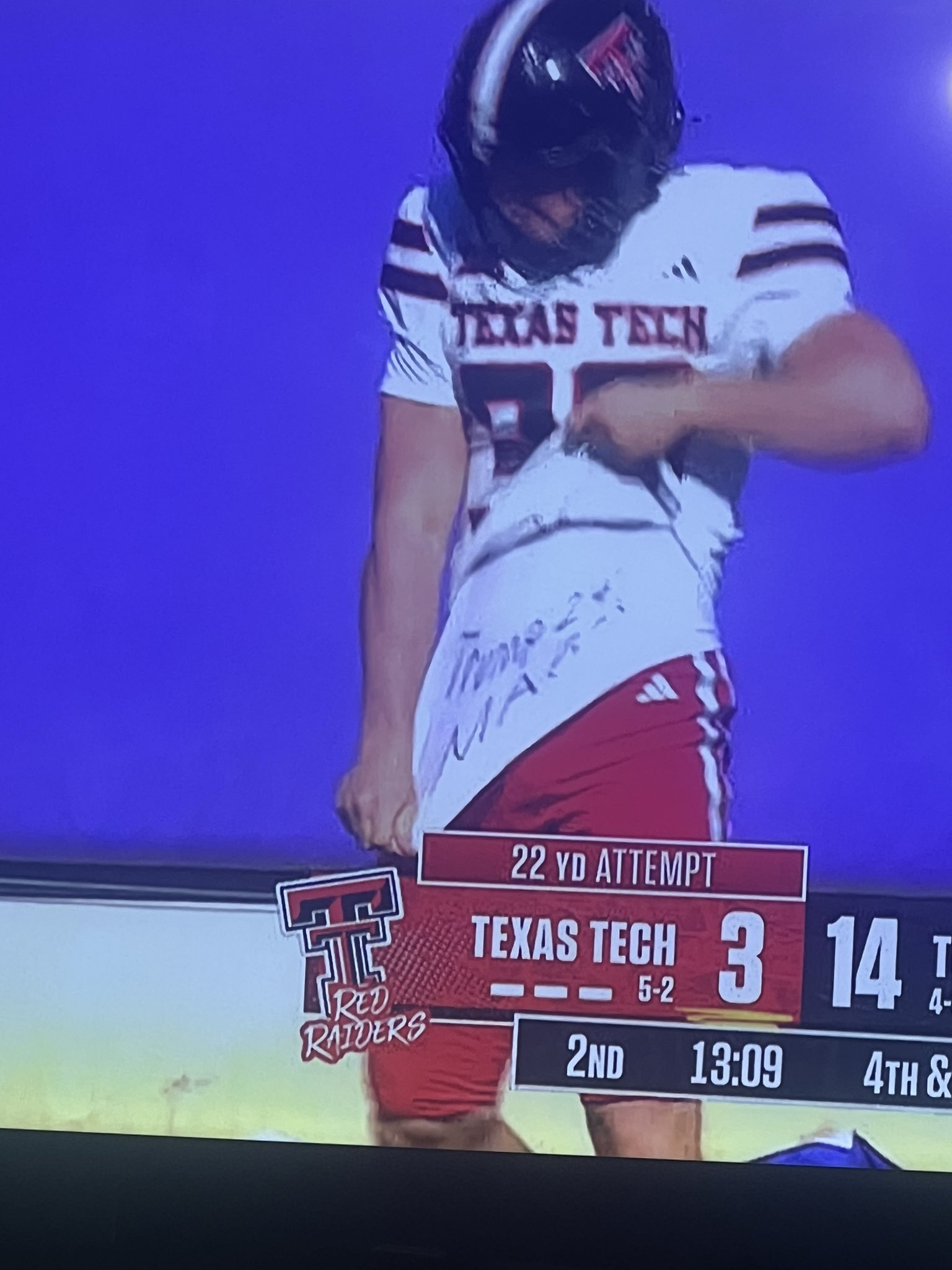 So we now go to the final moments of the game. Texas Tech is down by one point, 35-34, after a strong TCU rally to give the Horned Frogs the lead. But Texas Tech tried to set up the game-winning field goal – only to fumble it away and lose the match, 35-34.