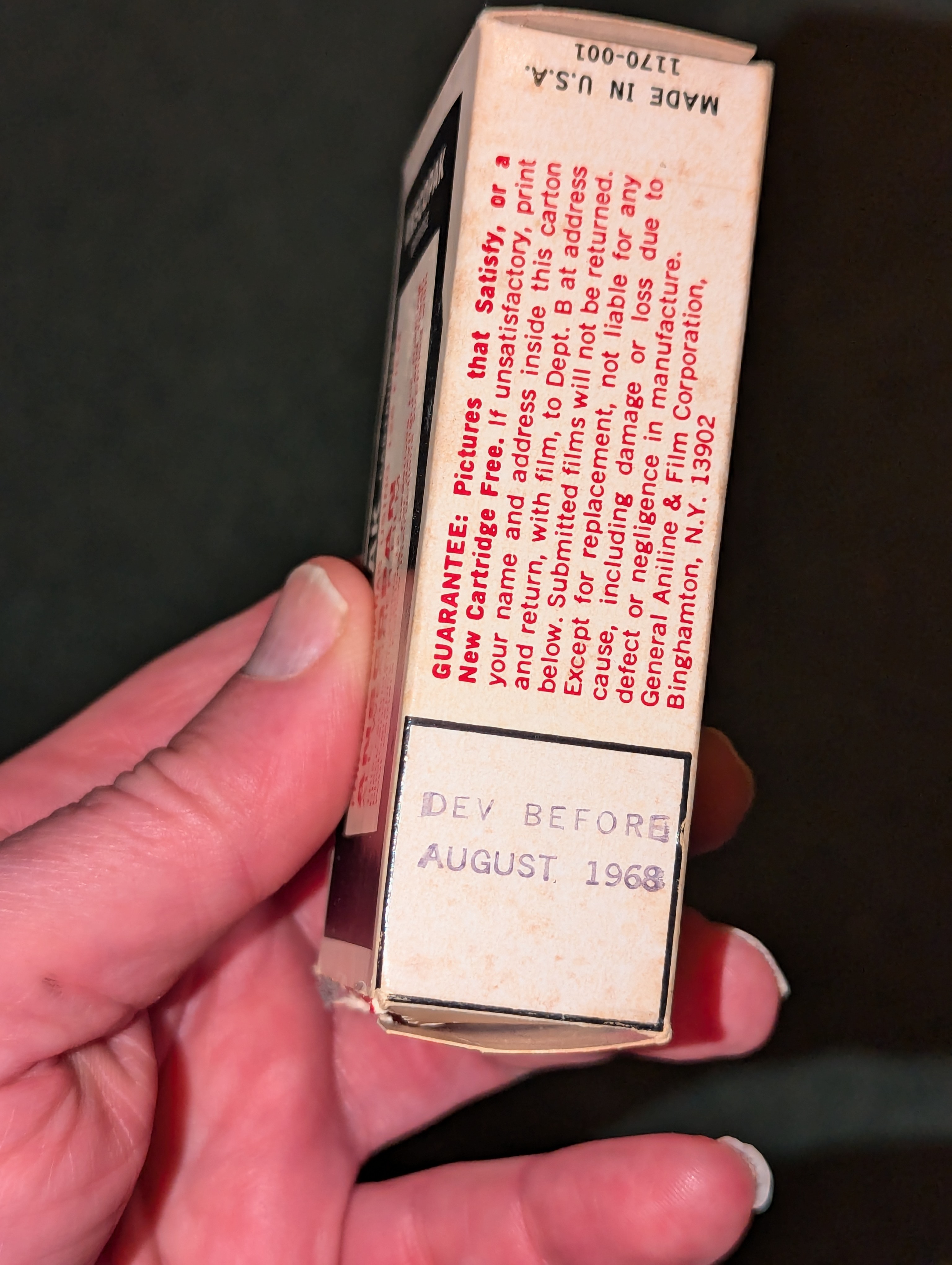 Like this GAF Anscopan 12-shot pack, with a freshness date to develop before August of 1968.