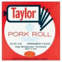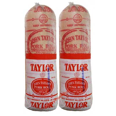 What you see here is a processed product that’s either called Pork Roll or Taylor Ham, depending on if you live in South Jersey (Pork Roll) or North Jersey (Taylor Ham). It can be purchased as thick cuts from the roll, or thin cuts in individual packaging.