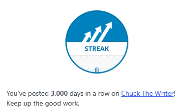 No, seriously. They told me I had blogged for 3,000 straight days.