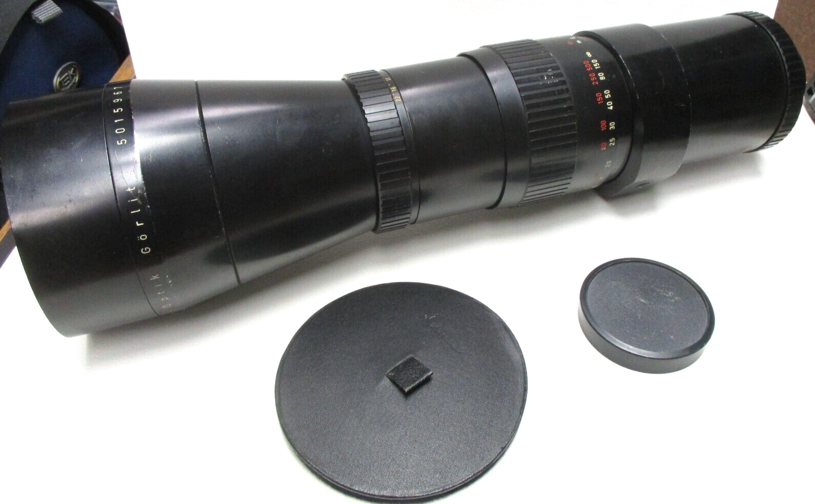 This is a 500mm telephoto lens from East Germany. It was manufactured by the German optics company Meyer-Optik Görlitz, and it has the Pentacon Six (“P6 Bayonet”) mount. This thing stops down to f/5.6, so although it’s not going to catch super action shots, I will be able to snag some sweet distance shots with it. And added bonus – it comes with the original lens caps, which is great as well.