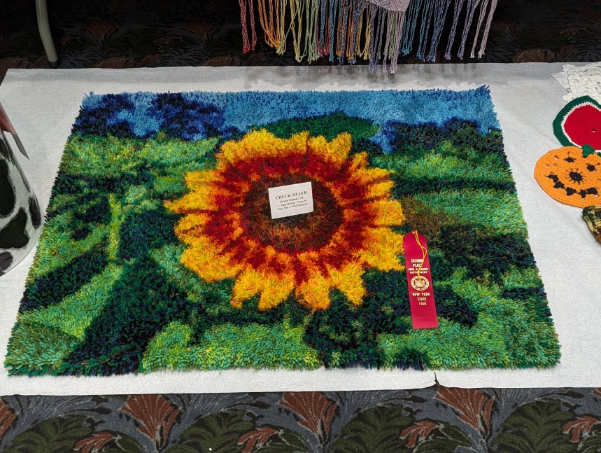 And for the first time, the New England Center has opened the competition to allow adults to enter latch hooked rugs – so … hmm … do I have a latch hooked rug available for display?