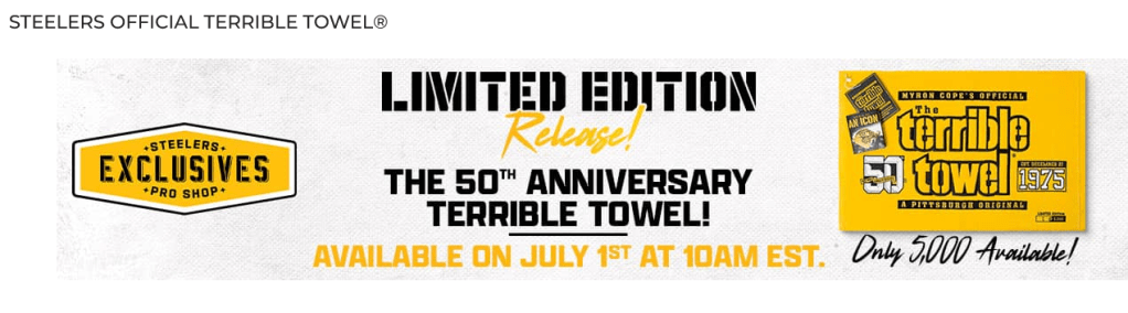 If I don’t … I’ll console myself by purchasing two other Terrible Towels. I saw some on the Steelers’ Pro Shop page that look rather swank.
