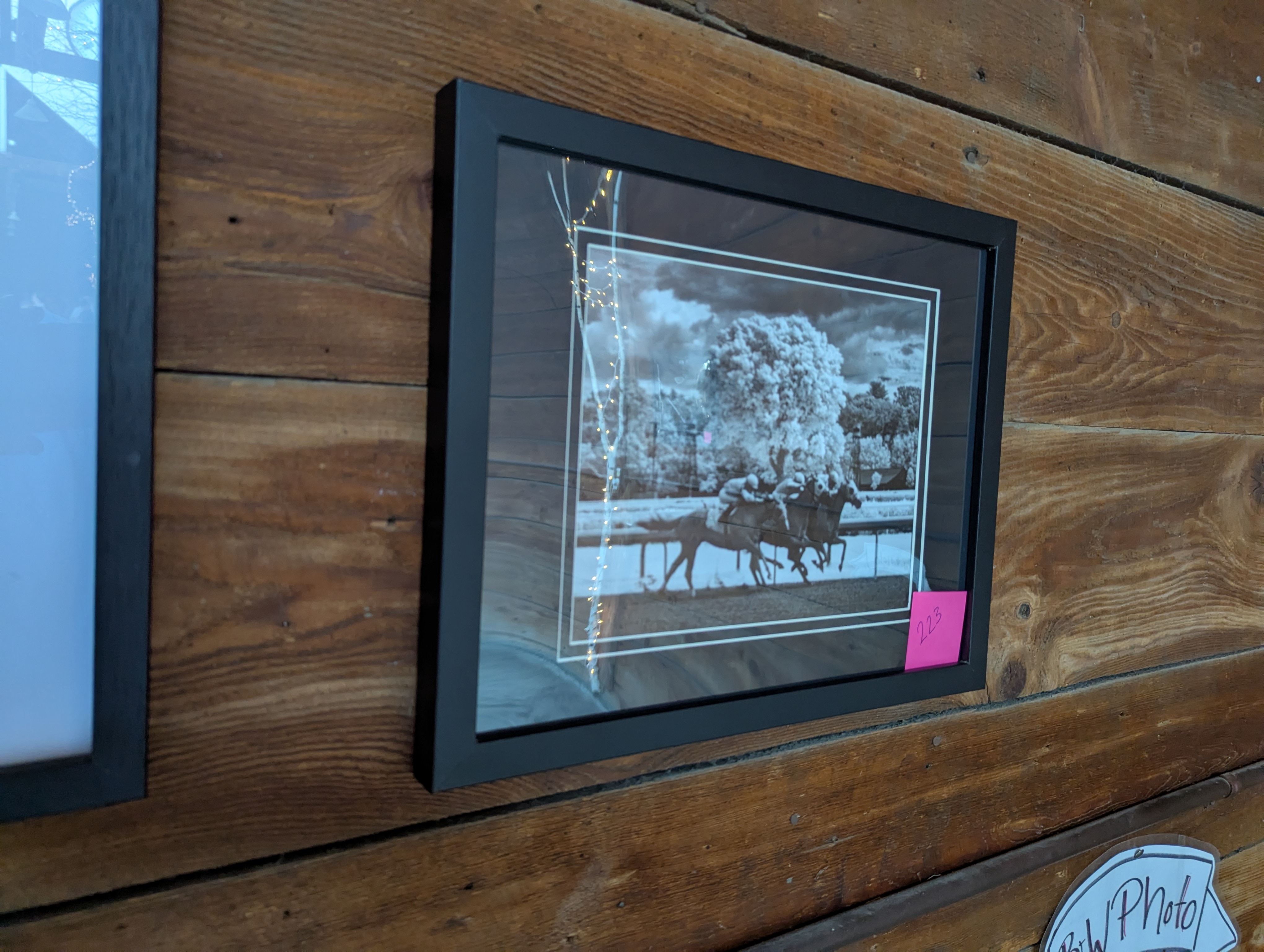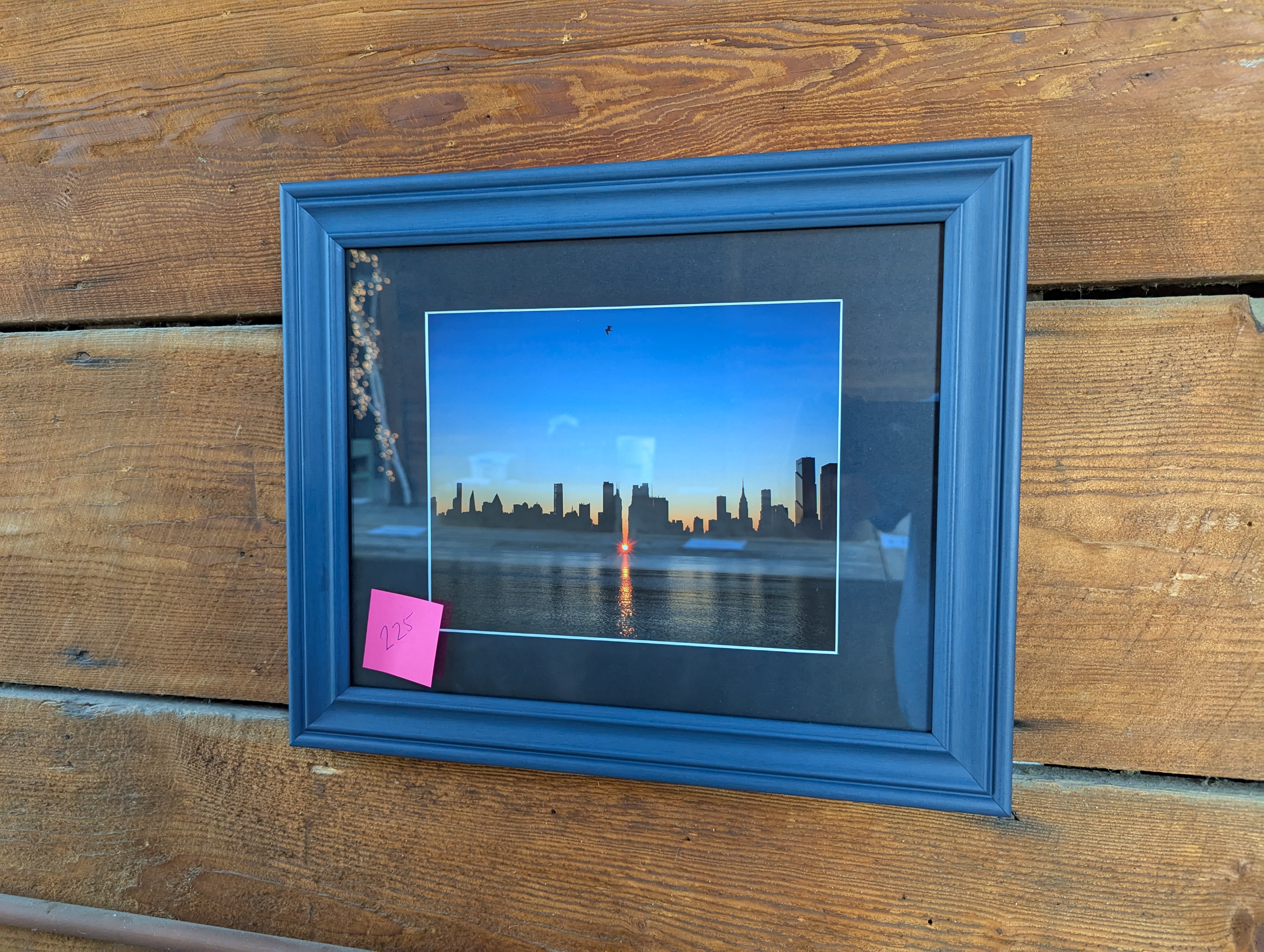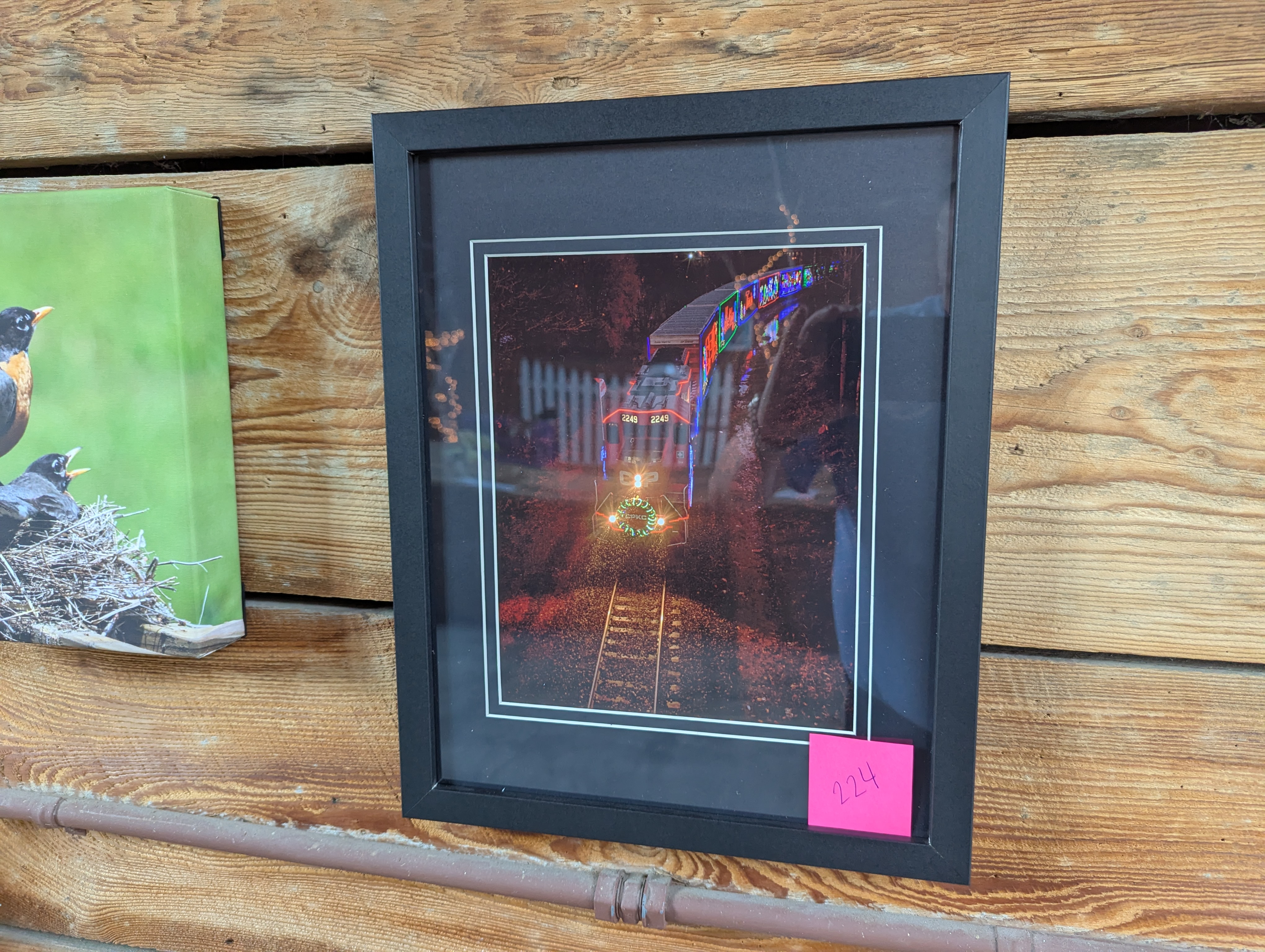 That’s Arriving in Sherbrooke, or Arrival for Christmas, I’ve bounced between two names for this artwork. I should note that there is NOT a picket fence in the photo; that’s a reflection off the glass.