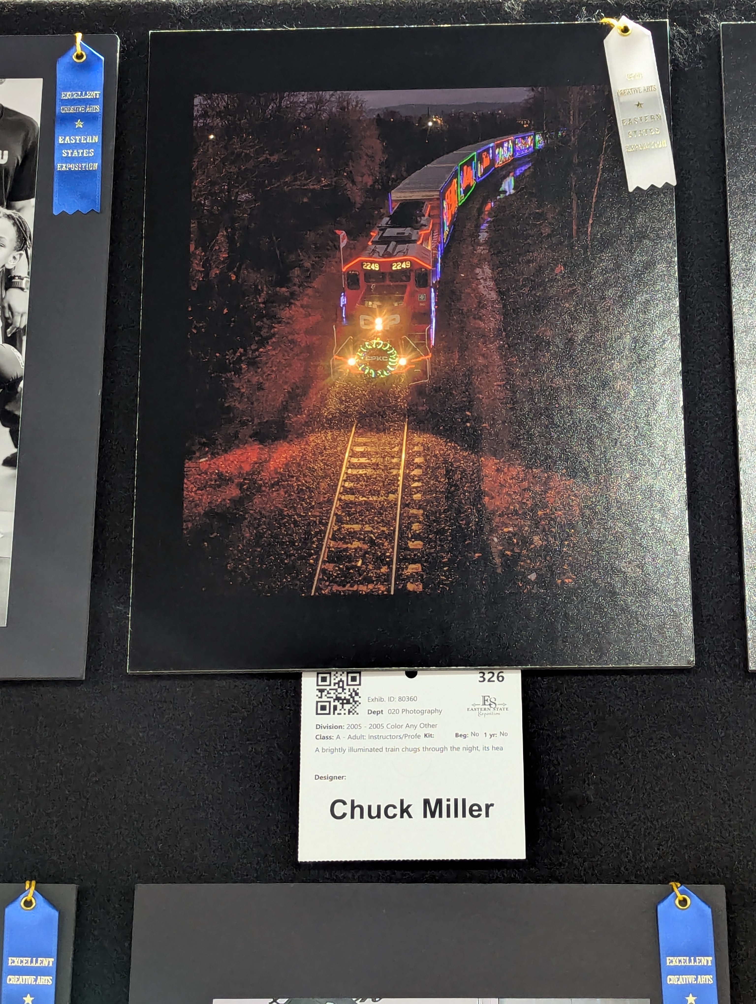 That white ribbon means this picture earned a third place award. The Big E awards merit on the Danish system, where you’re not competing against everyone else; you’re competing against a standard of quality. So this is the first silk for any Canadian Pacific / CPKC Holiday Train imagery. And I’ll take that any day of the week.