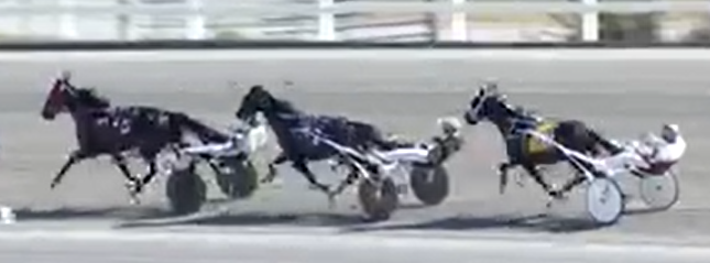 If you want to see the full race, go to the Saratoga Harness website linked below, pull up the sixth race from Sunday, September 28, and watch for yourself.