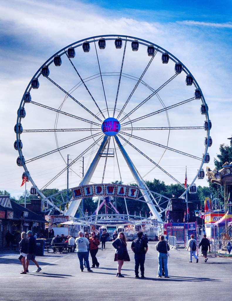 Big E Ferris Wheel. Pentacon Six TL camera, Carl Zeiss Jena Biometar 80mm f/2.8 lens, Kodak Ektachrome 100 film. Photo (c) 2025 Chuck Miller, all rights reserved.