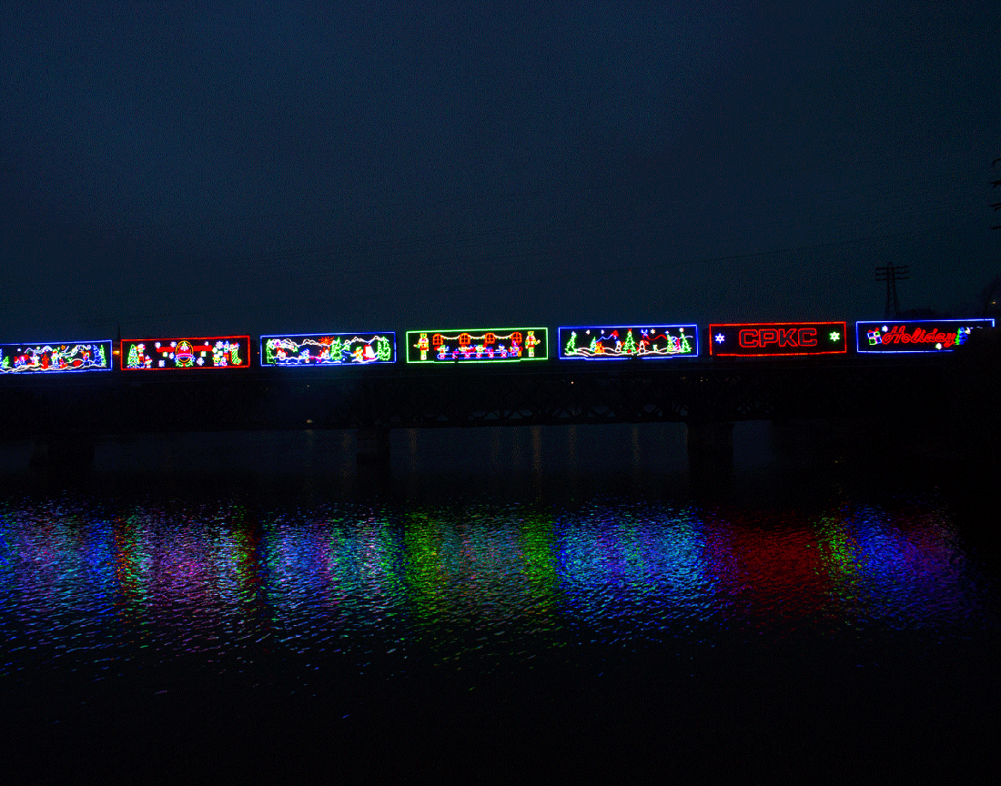 This time … I want the lenticular shot. I want to show the Holiday Train and its cascade of spectacular twinkling lights. I want to show the train as it cycles through its incredible decorated boxcars and rolling stock. And I want to capture it on the Cohoes-Waterford Bridge.