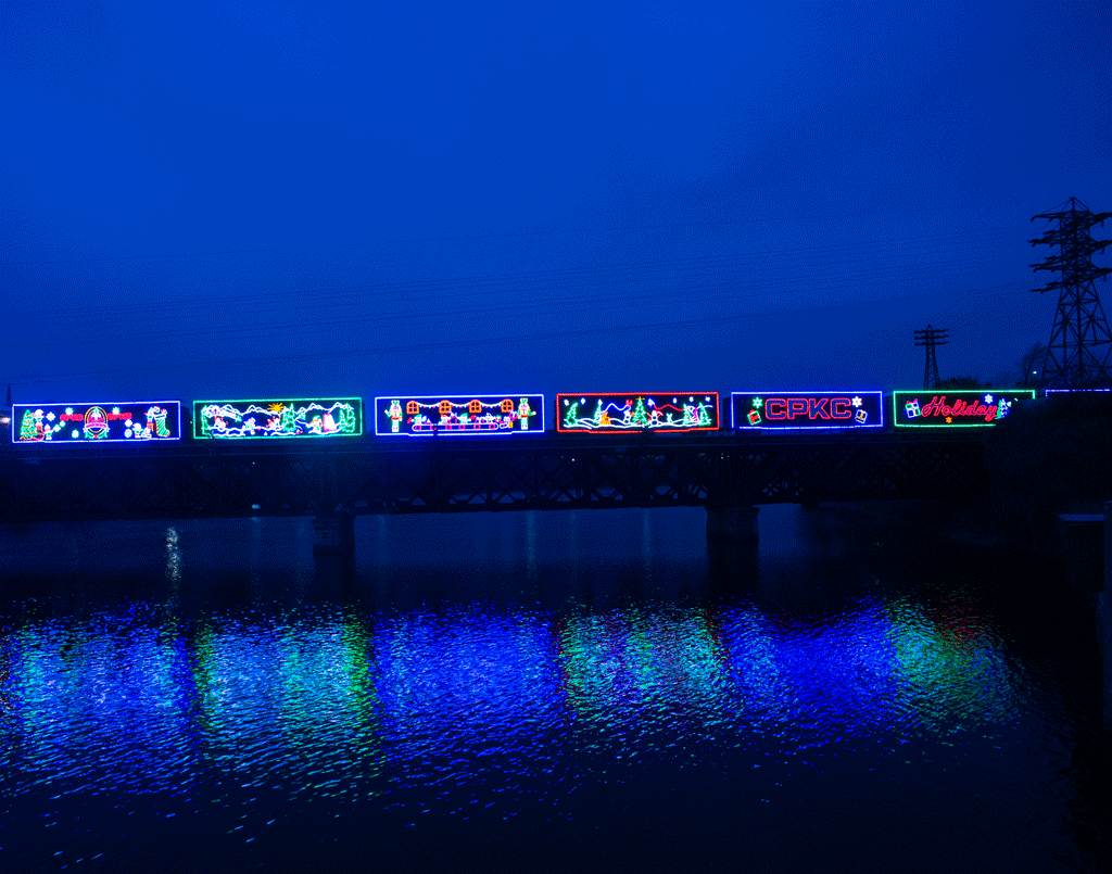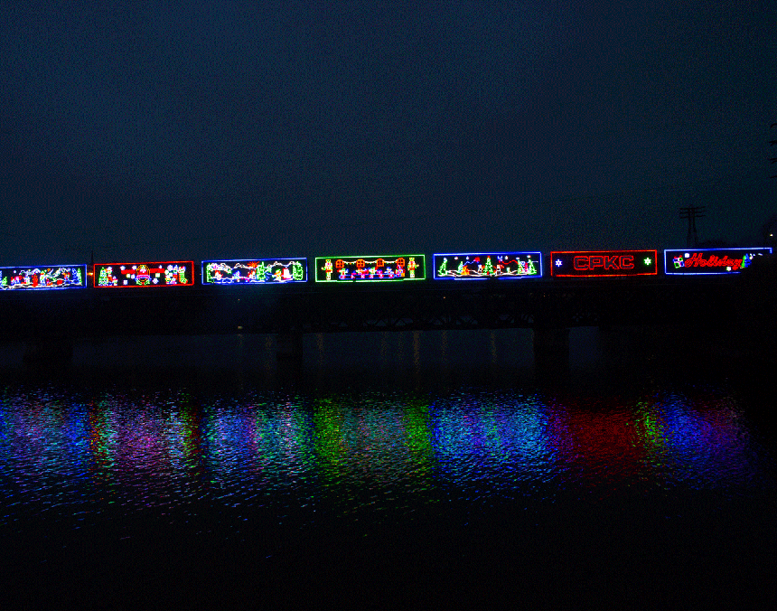 The CPKC Holiday Train 2025 crossing at the Cohoes-Waterford Bridge