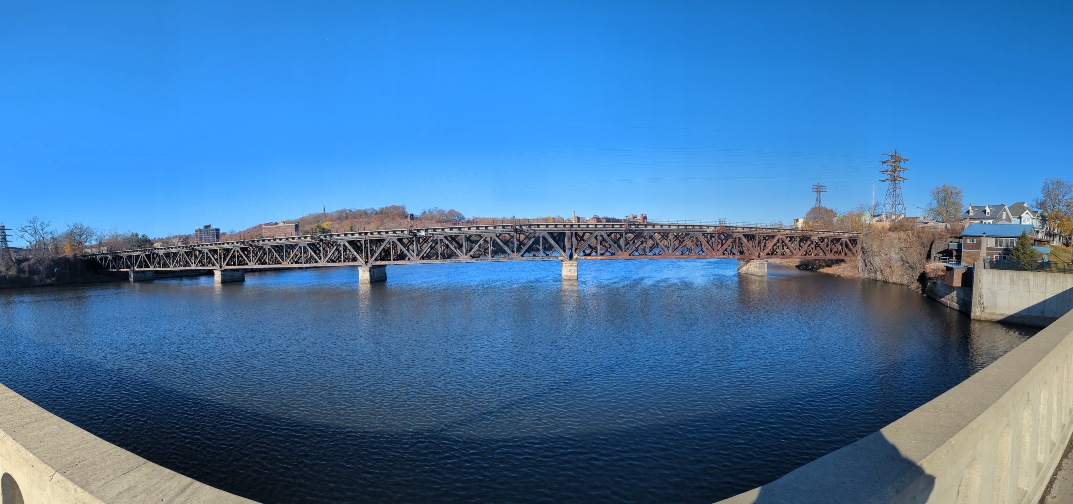 So I tested things out with a panoramic photo from my cell phone camera. Just to determine where to stand on the bridge to get the best view of everything.