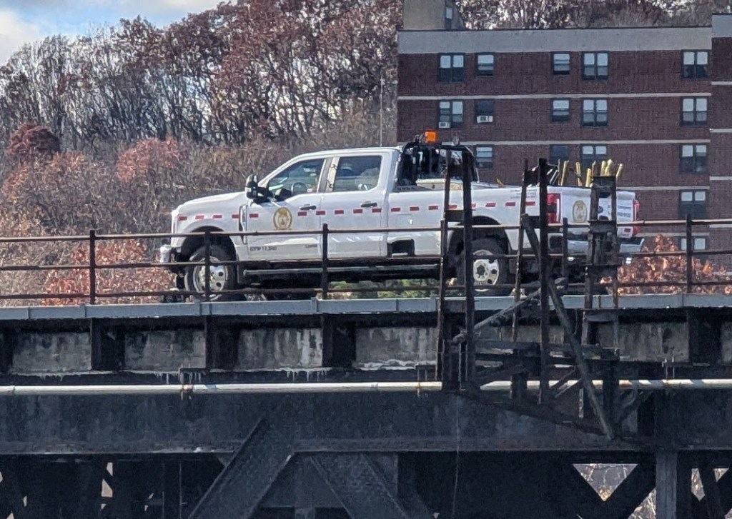 On Monday, November 24, the CPKC Holiday Train will have several shows in Kahnawa’ke, in Saint-Constant, in Delson, and in Lacolle. It will then travel by night to Albany, and should pass the Cohoes-Waterford Bridge by sunrise. The Cohoes-Waterford Bridge runs parallel to the Route 32 automobile crossing, and all I need to do is get my camera in place, lock down the tripod, lock down the selected lens, and wait for the train to pass.