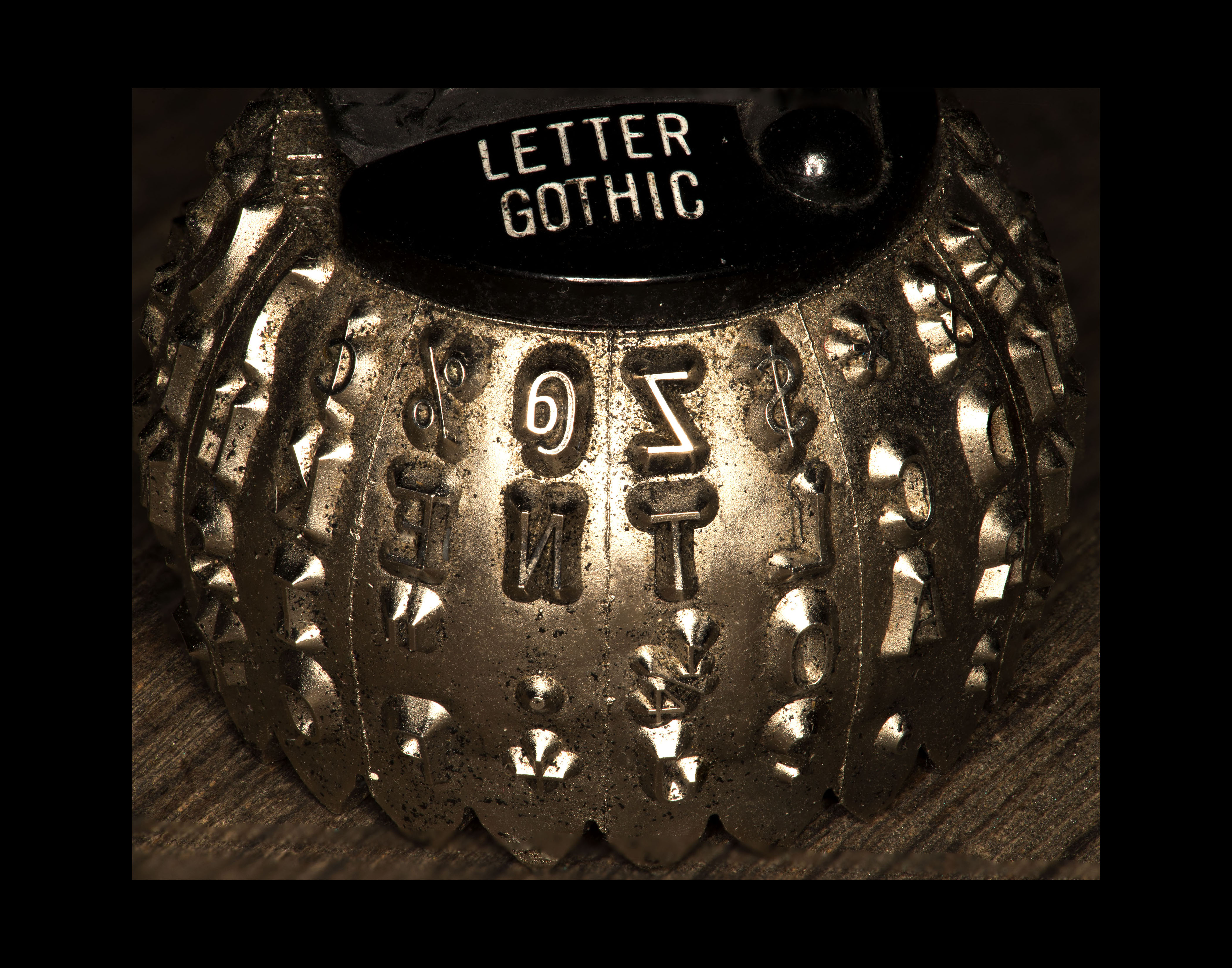 Letter Gothic Element Ball. Nikon Df camera, Medical Nikkor 120mm 1:4 lens, 60 images combined in focus stack. (c) 2026 Chuck Miller, all rights reserved.