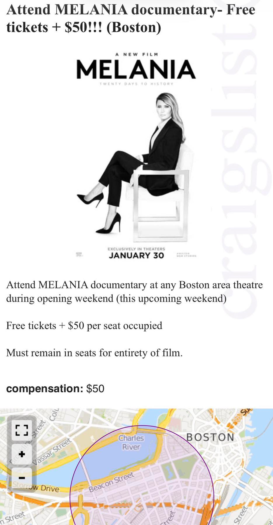 This apparently is a legit Craigslist advert regarding the Melania movie.