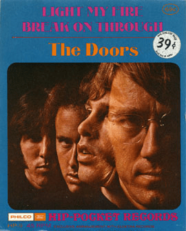 The sleeves themselves were nothing more than a listing of the two tracks and a stock photo of the artist or band; but even in that framework some artistic gems are discovered. The Doors’ “Light My Fire” (HP-9) shows a transparent Jim Morrison superimposed over the faces of his bandmates. Tommy James’ “I Think We’re Alone Now” (HP-1) shows him with a trio of comely cuties (folks, I don’t think these are the Shondells). John Fred’s “Judy In Disguise” (HP-25) shows the band in an elegant stained-glass motif. And the releases by the Five Americans (HP-10) and Keith (HP-20) could arguably be called their “Greatest Hits” collections.