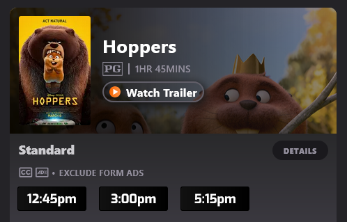 Decisions, decisions – what to see, what to see – and I finally settled on an afternoon showing of Hoppers. Yes, I’m a sucker for Pixar films. And the film was pretty good in and of itself.