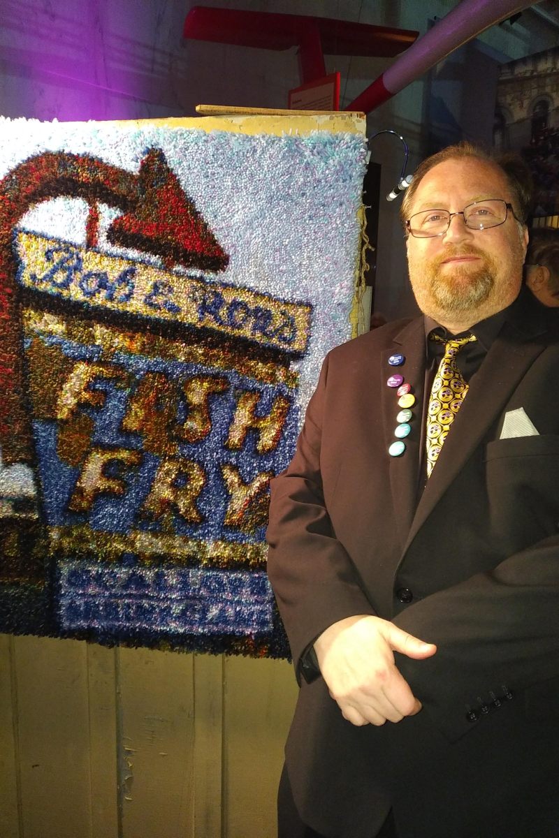On Friday afternoon, I schlepped my three BUILT artworks to the Empire State Plaza museum for the 2019 Historic Albany Foundation BUILT: Albany Architecture Through Artists’ Eyes art show. I’m hoping that all three pieces find new homes. One wired-up piece (featuring the sign from Hoffman’s Playland), one piece from my latched hook art series…